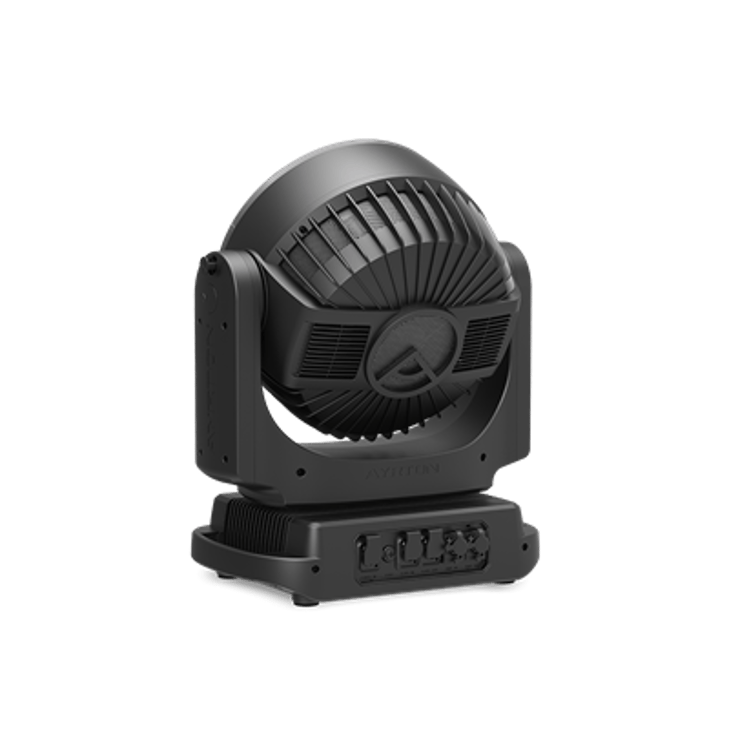 This luminaire presents a minimalist design incorporating features for total protection against harsh weather with easier internal access, and its front window, made of highly resistant and exceptionally transparent polycarbonate with a V-0 protection rating, is designed to ensure optimal visuals. The placement of pan & tilt motors in the base and head of the luminaire avoids the constraint of weatherproofing the yoke arms. A new submersible ventilation system in a non-waterproof compartment allows for optimal cooling. Due to a new composite alloy, reduction in thickness of the parts, an optimised cooling system, simplified lens guidance, and integration of low-density optical components, AYRTON has been able to reduce overall weight by 20%.