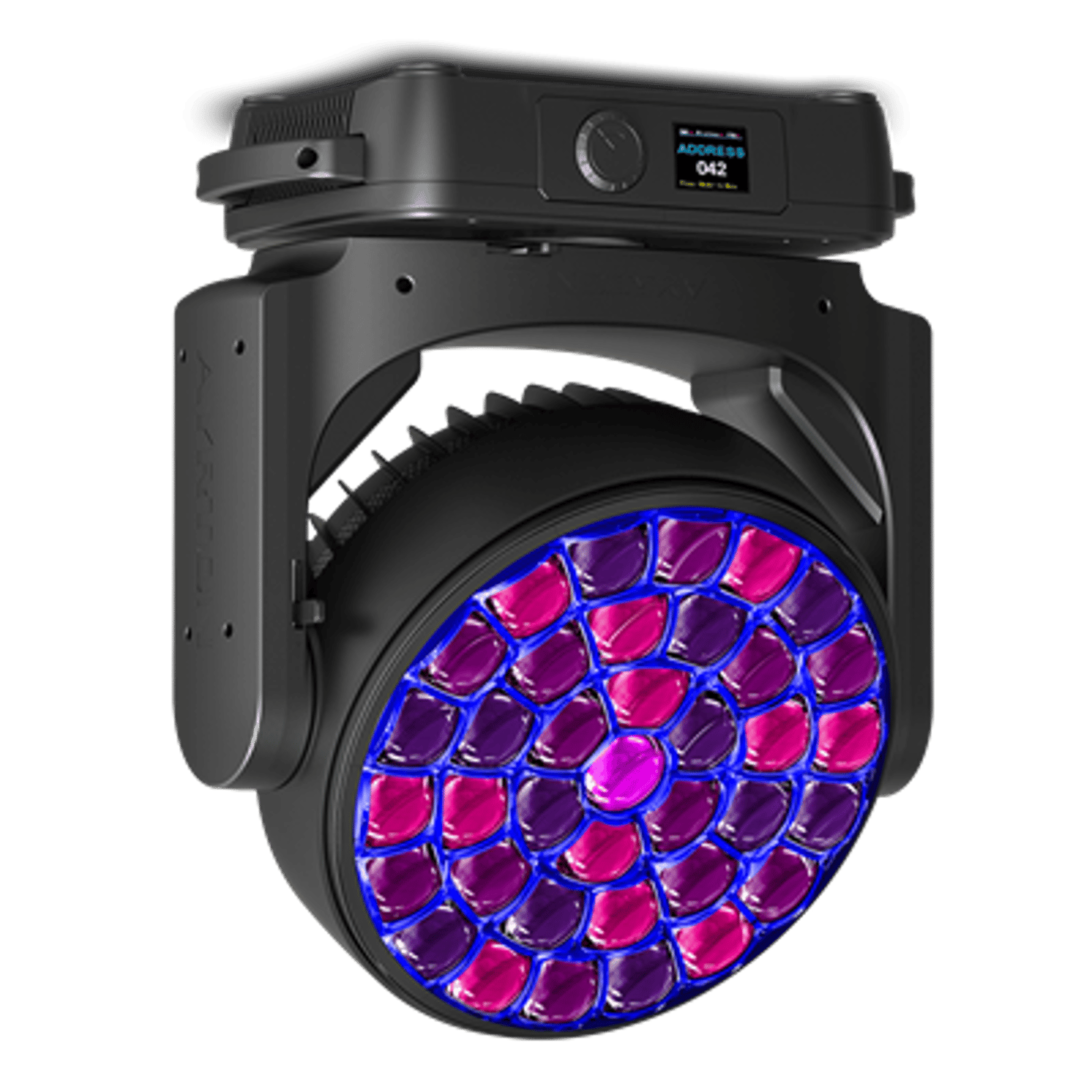 ZONDA 9 FX is a versatile fully-equipped luminaire designed for a multitude of applications. It borrows from the main featuresof the WASH version and offers infinite continuous rotation on the pan & tilt axes I.R.S.TM. Individual control of each LED allows you to achieve 3D volumetric effects. ZONDA 9 FX can produce a high-definition liquid effect from between its main lenses to create complex graphic effects LiquidEffectTM. This effect can be used alone or in combination with the main LED matrix. ZONDA 9 FX is a marvel of technology geared for creativity.