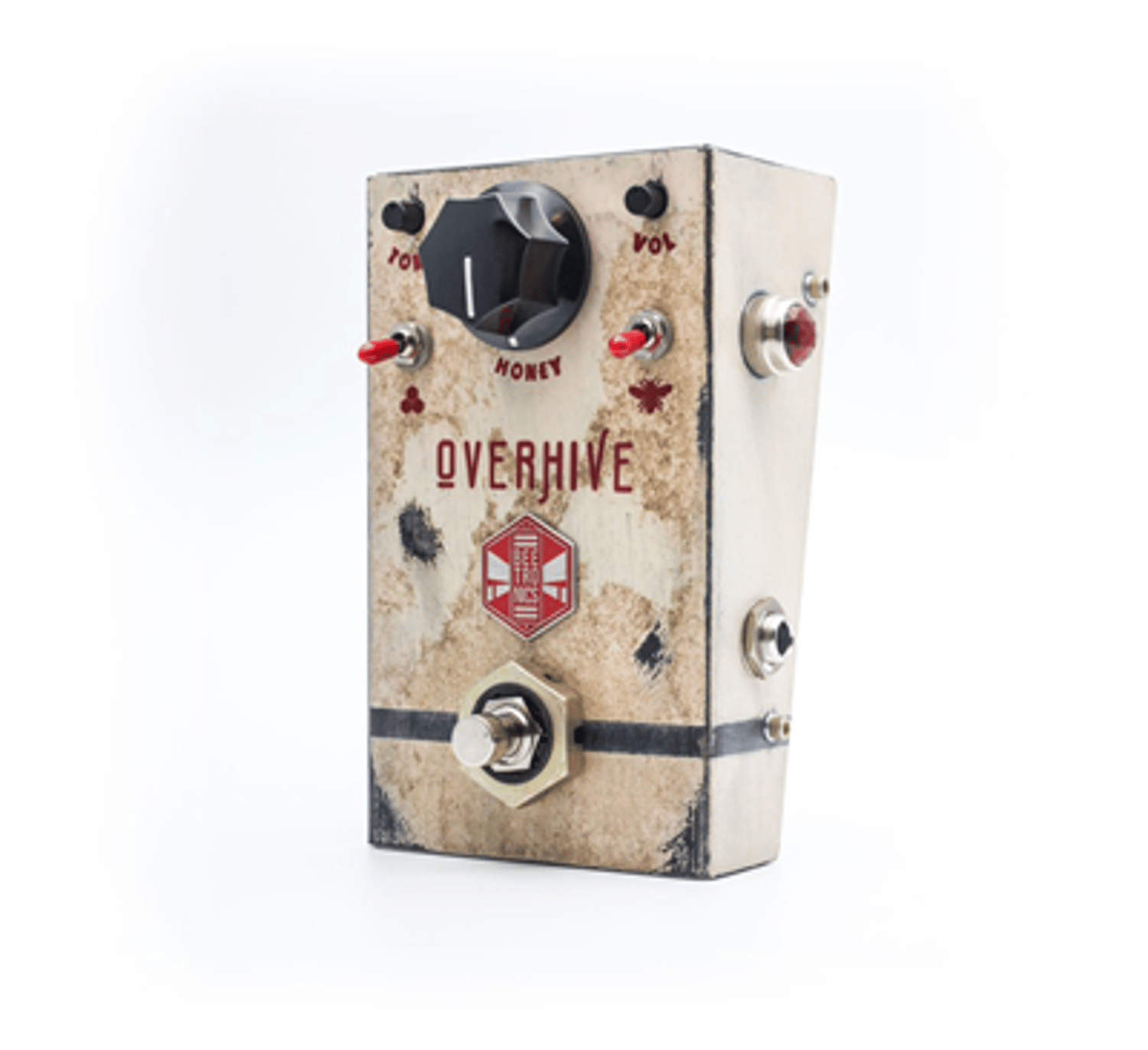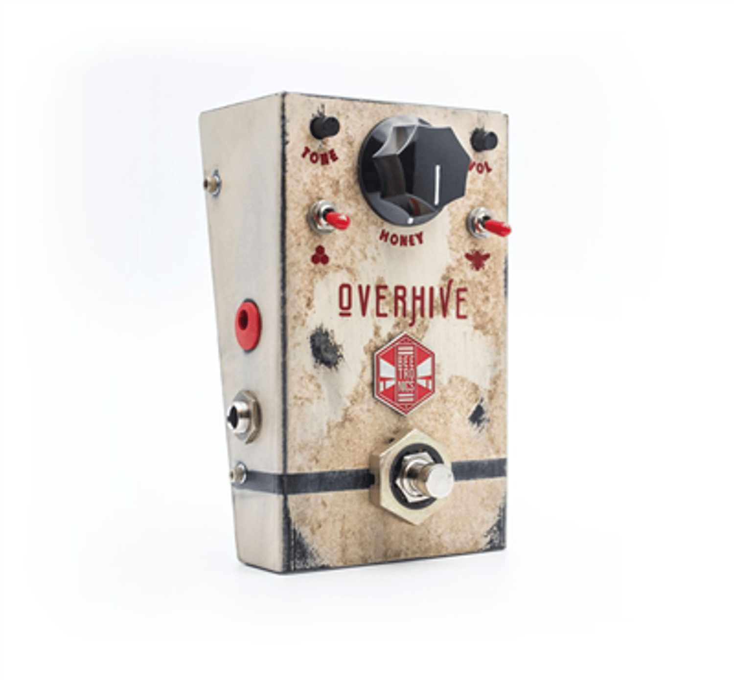 The Overhive is an extremely versatile medium gain overdrive. It’s round and warm tone respects your amp, enhancing it’s best qualities while dynamically reacting to your playing. This pedal achieves the elusive mid-gain overdrive without making you feel a disconnect between you and your amp. Your sound remains punchy and direct with a warm musical break up and singing sustain.