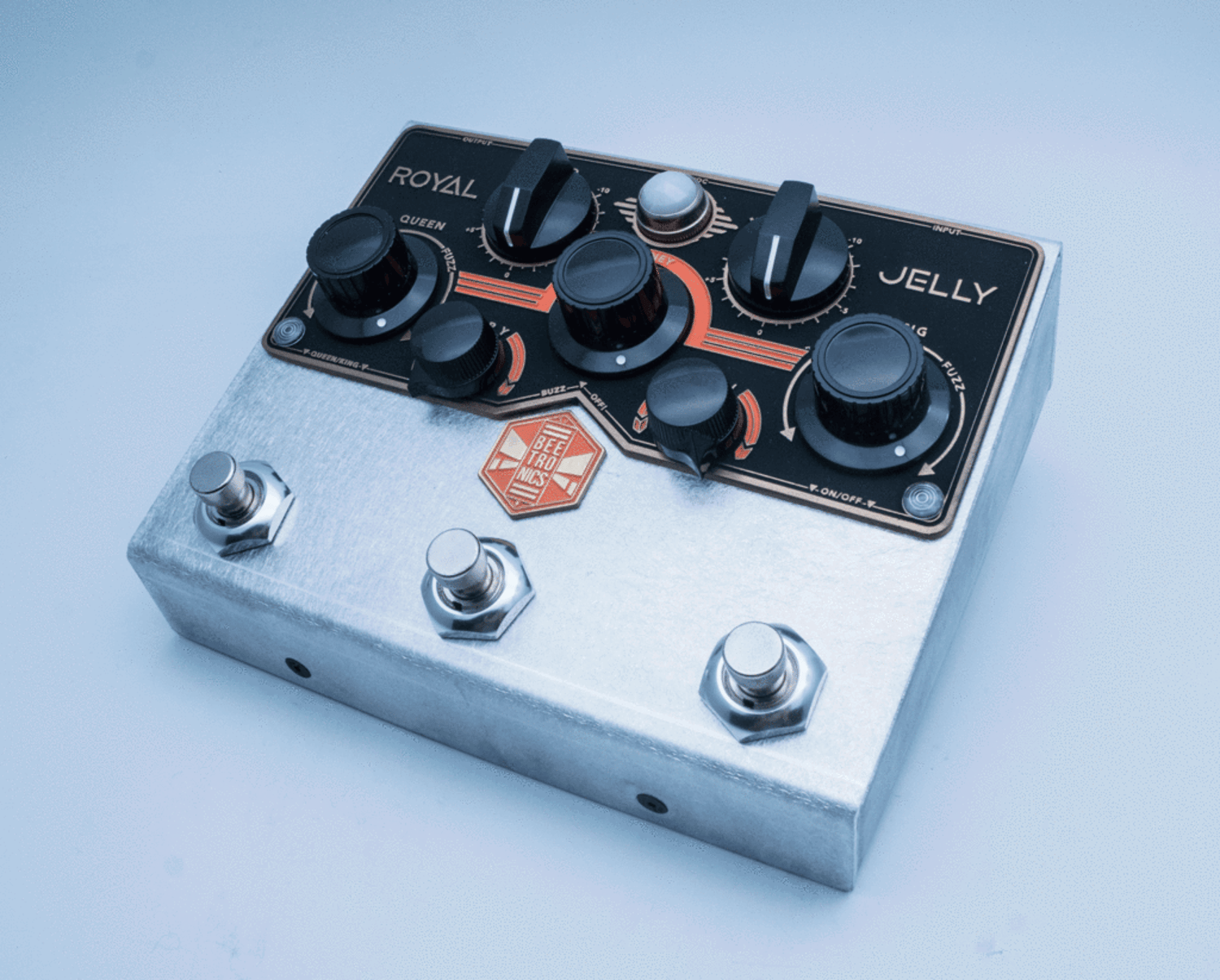 The Jelly’s powerful EQ gives you 10dB of cut/boost for HI and LO making it possible to shape your tone in many different ways, while the BUZZ switch adds that nasty high end usually found on the vintage fuzz boxes to its fuzz circuit. The Royal Jelly drips tone and it’s a pedal that can change your approach to overdrive and fuzz.