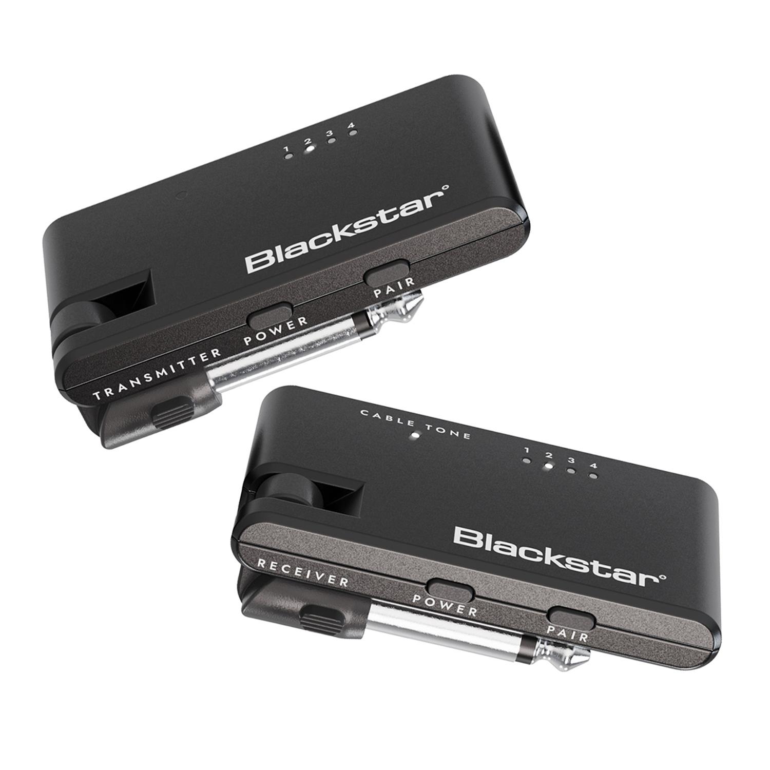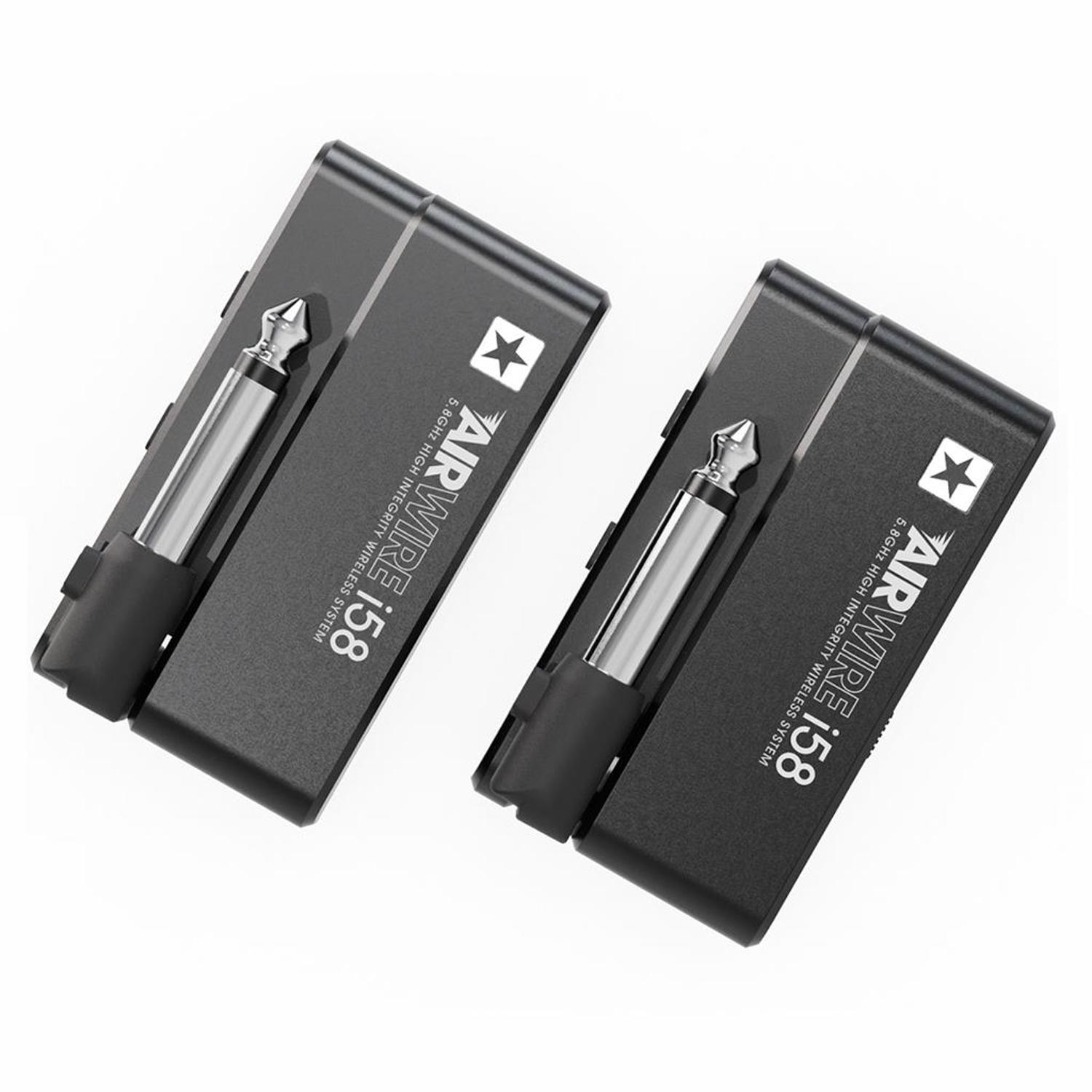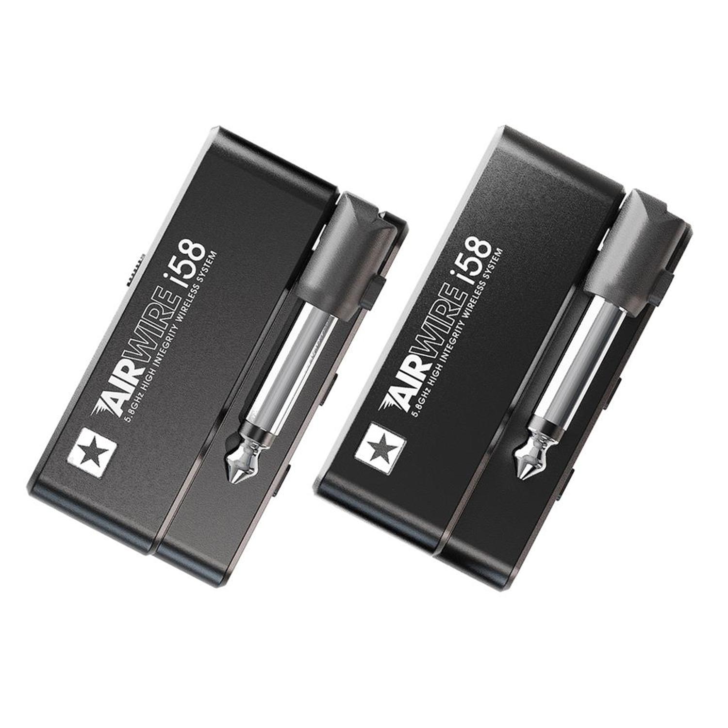 Specifications Wireless instrument system for guitars, basses, and other musical instruments with 1/4" output. Experience true cable-free freedom without sacrificing tone or playability. Operates in the 5.8GHz frequency band for a stronger, interference-free signal. Ultra-low latency ( Accurate frequency response (20Hz–20kHz) preserves every detail of the tone. Switchable CABLE TONE feature mimics the natural roll-off of standard instrument cables. Up to 35 meters transmission range for unrestricted stage movement. Supports up to four units operating simultaneously without interference. Flip-out plug design for seamless compatibility with instruments, pedals, and amps. USB-C rechargeable lithium-ion battery with up to 9 hours of continuous use. Auto power-off feature saves battery when inactive for 10 minutes. Illuminated star logo for a stylish touch. Charging time: less than 2.5 hours. Dimensions: 6.7 x 3.7 x 2.1 cm. Weight: 45g per unit. Read moreThe Blackstar AIRWIRE i58 comes in a small and compact form factor and will never interfere or distract your playing no matter what instrument you’re using. Up to four AIRWIRE i58 sets can be used simultaneously without interference - perfect for a full band.