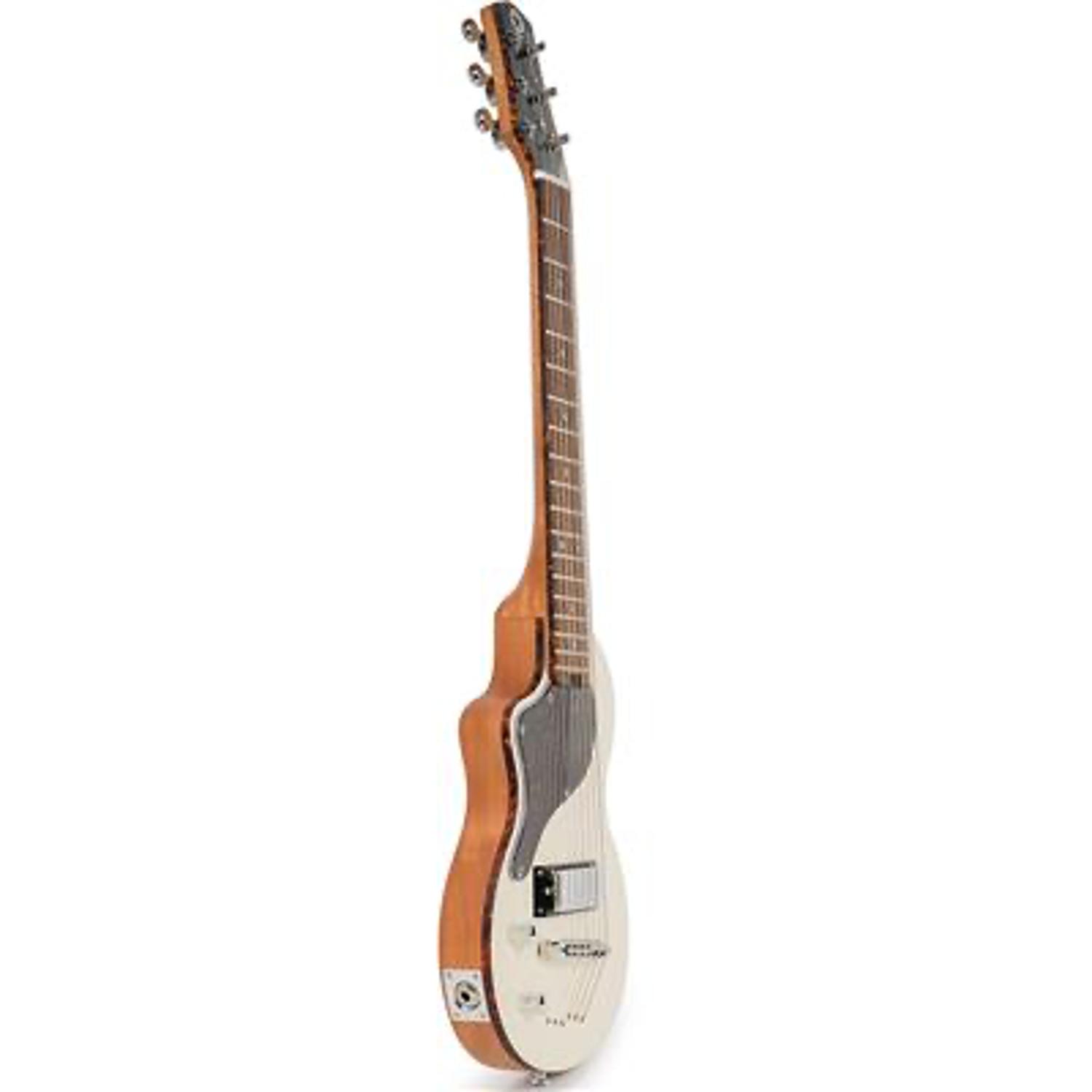 Body: Okoume (Gaboon Mahogany), single piece construction for body and neckFingerboard: Laurel, 19 fretsScale Length: 20.7" (527mm)Pickups: Mini-humbucker with coil-split via the Volume potControls: Volume (pull for coil-split), ToneMachine Heads: Der Jung Sealed Tuners x 6, 1:14 gear ratioStrings: D'Addario EXL145 nickel wound strings, 12-54 (Heavy)Finishes: Vintage WhiteGig Bag: Included