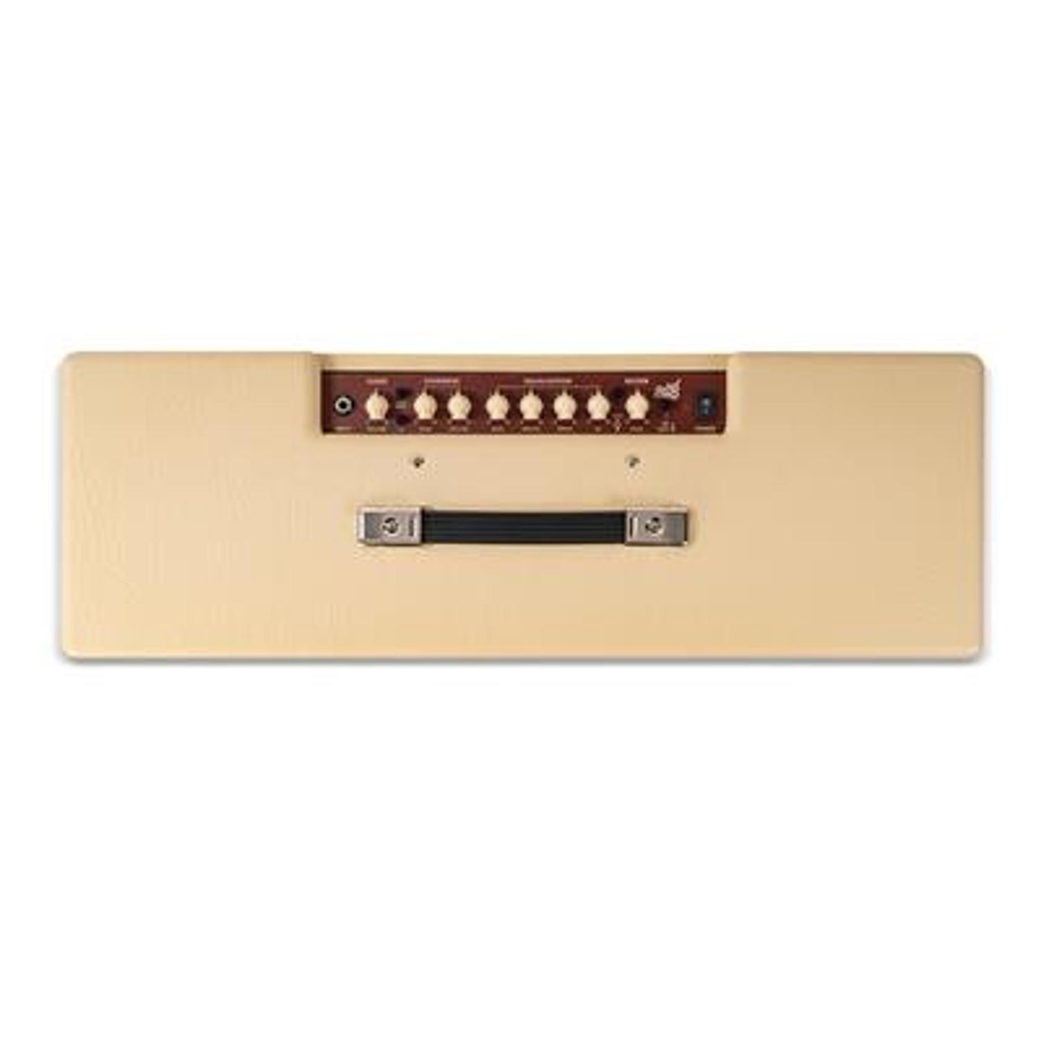 Specifications Powerful 100W analogue amplifier 2x12" Speaker Configuration Footswitchable Clean and Overdrive channels Lightweight MOSFET preamp reacts to pedals like a traditional valve amp Clean channel Bright switch for sparkling clean tones Power reduction down to 5W Specifically designed as high headroom pedal platform amp Series effects loop Patented ISF (Infinite Shape Feature) tone control for user sound customization 'Plate' and 'Hall' digital reverb options Cabinet emulated Line output for recording or headphone practice High-quality playback of Line input sources Perfect for practice, recording and gigging Vintage cream and oxblood finish Universal Voltage Input 100 – 240VAC Designed by Blackstar UK. "Read more