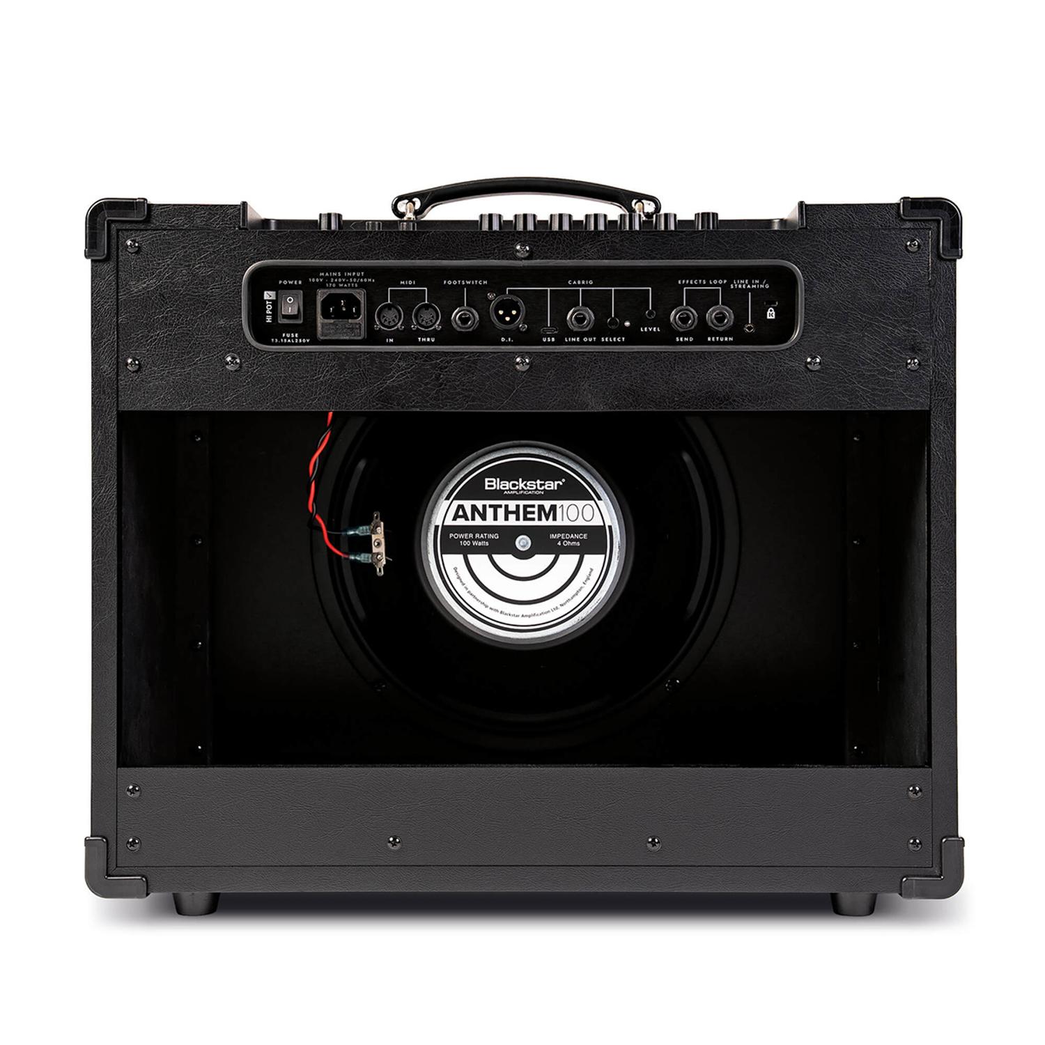 Product Features 100W digital combo amp with selectable 1W/20W/100W power modes 6 amp voices for clean, crunch, and high-gain tones Built-in display screen for effect selection and editing 4-band EQ: Bass, Mid, Treble, ISF for tonal shaping Over 35 Pre FX, Modulations, Delays, and Reverbs included 4 individual effect parameter controls via screen interface Save and recall custom patches for instant tone access Display provides patch names, FX selection, individual FX parameters, and recall control EL84, EL34, and 6L6 valve response emulation settings 1x 12” Blackstar Anthem 100 woofer USB-C recording interface for direct DAW integration Professional XLR DI and ¼ “ Line Output using CabRig technology Line In / Streaming allows direct-to-phone TRRS audio for easy livestreaming and recording MIDI DIN In and Thru connections Footswitch compatibility with FS-12, FS-18, and other models Buffered FX loop for seamless external pedal integration Stylish, compact design with high-power output Simple and intuitive control without requiring external software Development and Design by Blackstar UK Read moreSpecifications