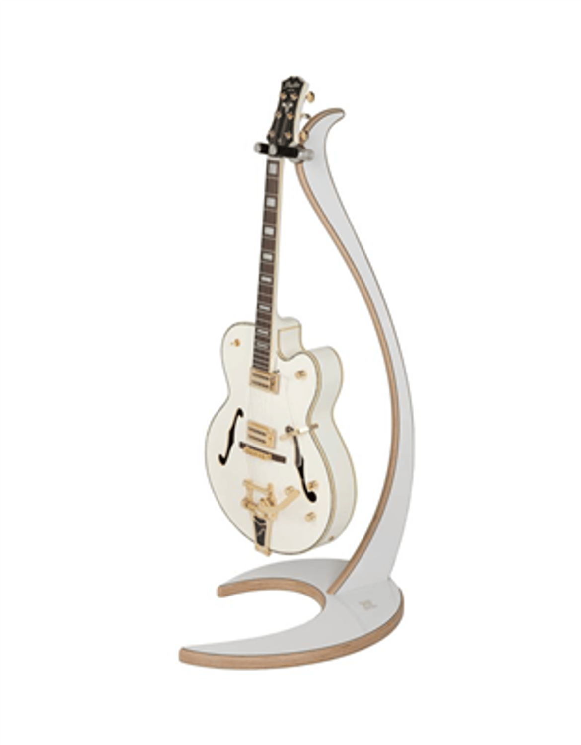 Dragon One is an exclusive wooden design guitar stand to show off your instrument. Made for a beautiful acoustic guitar, an exclusive electric or an eye-catching bass. This Dragon One comes with a natural (silver) aluminum carrier. For the finishing touch, choose your color woolfelt in our accessories section.