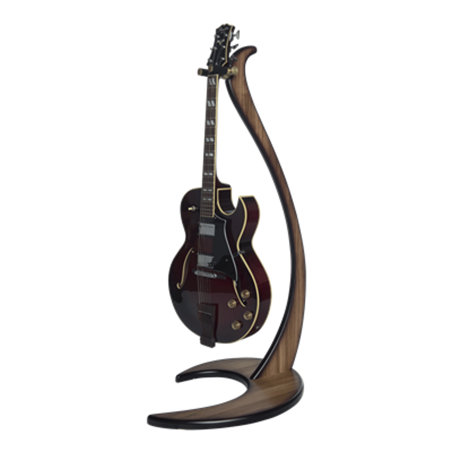 Dragon One is an exclusive wooden design guitar stand to show off your instrument. Made for a beautiful acoustic guitar, an exclusive electric or an eye-catching bass. This Dragon One comes with a natural (silver) aluminum carrier. For the finishing touch, choose your color woolfelt in our accessories section.