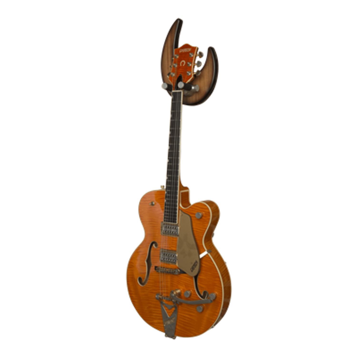 Wall Dragon wooden design guitar hanger shows off your instrument. Impress your friends and family with your beautiful acoustic guitar, exclusive electric or eye-catching bass. Customizable felt colors match your guitar. This Wall Dragon comes with a natural (silver) aluminum carrier. For the finishing touch, choose your color woolfelt in our accessories section.