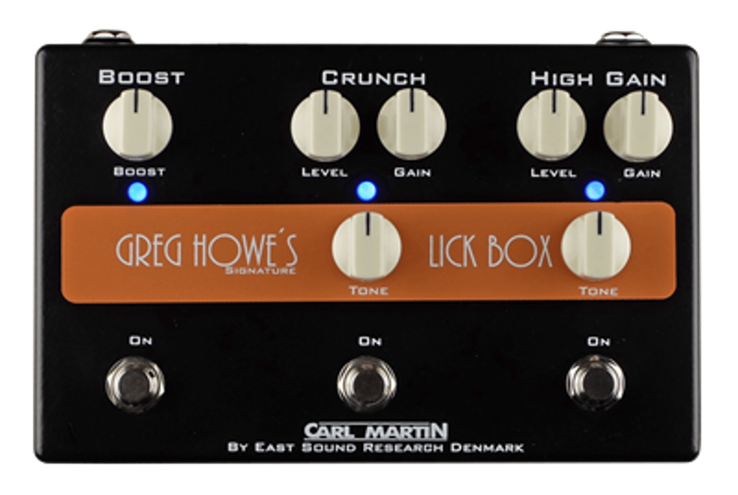 While chatting over a…um ‘coffee’ one day a while back, guitar ace Greg Howe asked Carl whether he could develop a pedal that would re-create his signature sound. A pedal that would combine Greg’s unique High Gain and Crunch tones, but allow him to manipulate these sounds and layer them for even more guitar fun. A little unorthodox yes, but Carl was never one to back down from a challenge, nor one to think inside the box. The result is the Greg Howe Signature Lick Box, and not only does it fulfill Greg’s requirements, but it adds even more great tones to Greg’s palette!
