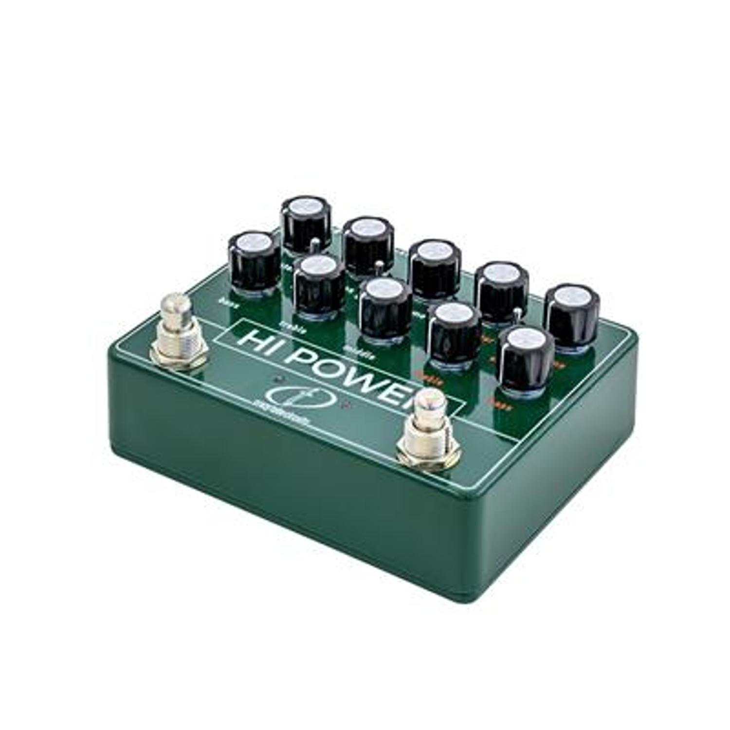 HI POWER features a power-up bypass/engage pre-set function for the footswitches. That way, you can select which state your pedal will go to when you plug in the power supply. This function comes in especially handy for people who use remote pedal switchers / loopers as they only set the state of the pedal once and then operate from the controller.