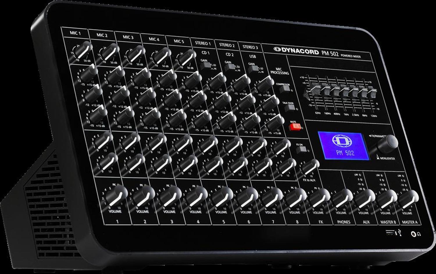 Read moreThe input structure, along with the entire feature package and connectivity, positions this mixer at the heart of many installations ranging from Bistros, small clubs, boutiques, hotel bars to churches, mosques and a wide range of similar applications. Further the PM 502 is an extremely versatile tool for a multitude of live applications. It will be the ideal choice for entertainers, DJs and small bands looking for a compact and light-weight solution for live applications or rehearsal venues. The onboard MP3-Player on the front, allows the user to easily play pre-recorded music from a USB stick or a hard drive. The additional digital USB interface on the rear also allows for basic recording with a PC.