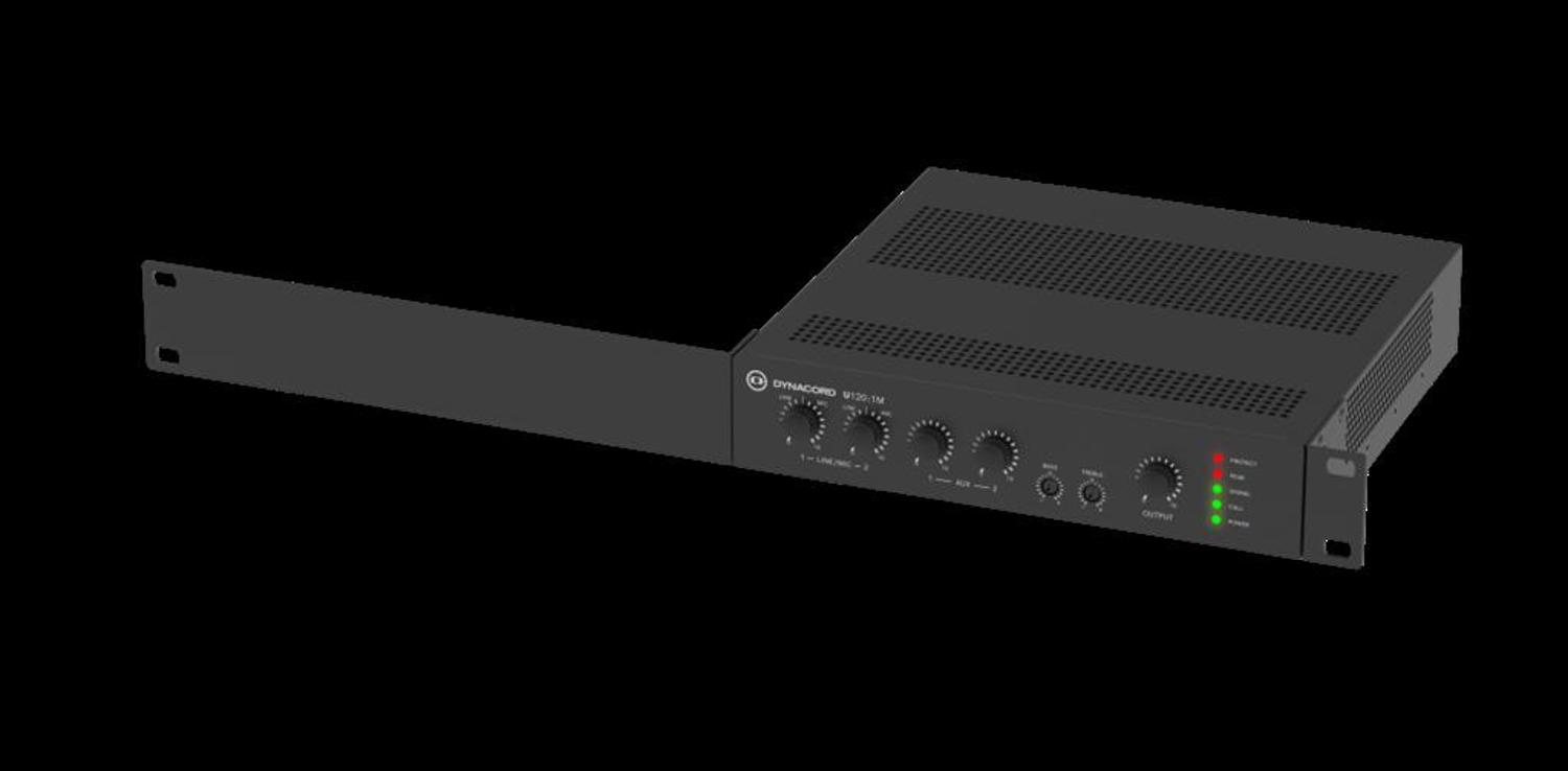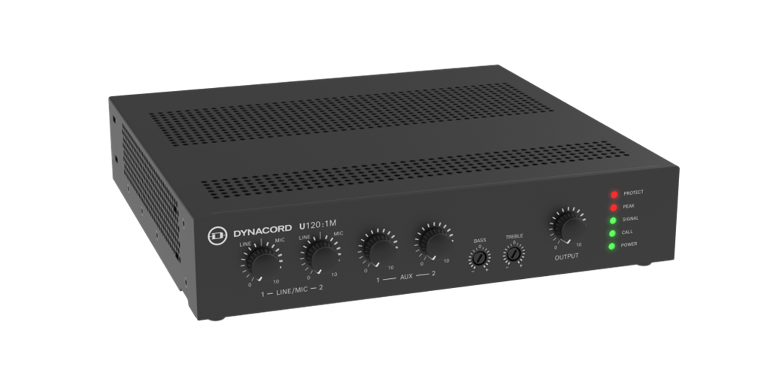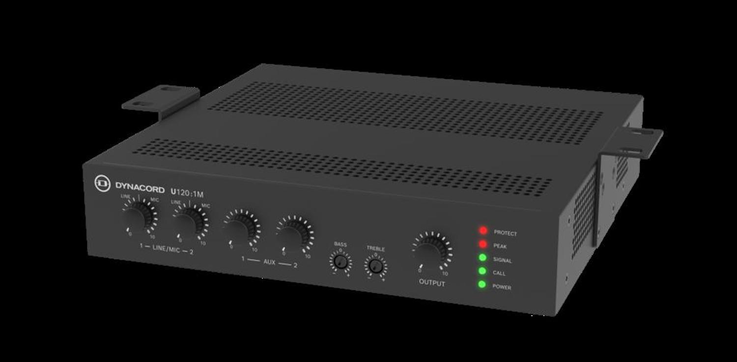 Introducing the U120:1M, a 120 W mixer amplifier designed to cater to the demands of small to mediumsized installations, where paramount considerations include quality, performance, and unwavering reliability. This mixer amplifier is ideal for background music and crystal-clear voice announcement applications, making it a perfect fit for diverse environments such as bars, restaurants, retail outlets, educational institutions, houses of worship, museums, galleries, transport hubs, and conference centers. Thanks to its compact size, standing just one rack unit high and half rack wide, the U120:1M presents numerous installation possibilities, even in spaceconstrained settings. Included brackets facilitate both single and dual rack-mount configurations, while desktop and under-counter installations are equally viable. When rack-mounted side by side, two amplifiers can seamlessly inhabit a single rack unit, optimizing space utilization and effectively doubling both channel count and output power.