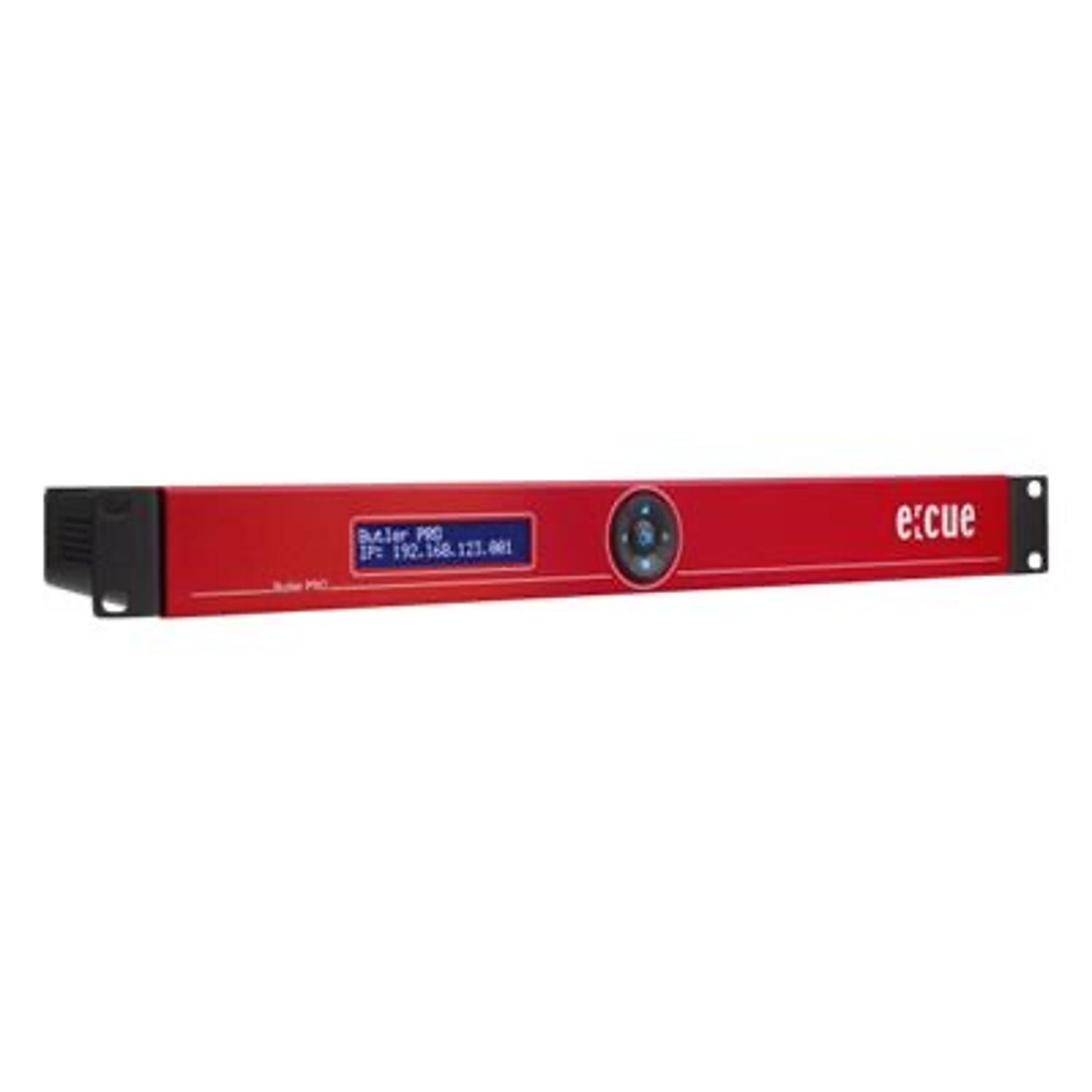 The Butler PRO is an e:net to DMX512/RDM (DMX512 version) or an e:net to e:pix (e:pix version) interface for the e:cue Lighting Application Suite (LAS) and SYMPHOLIGHT. Butler PRO is connected to the e:cue software via Ethernet. The Butler PRO DMX512 is the perfect choice for running a large number of DMX512 universes, offering support for 16 DMX512 universes with 8,192 channels and full RDM (Remote Device Management) capability for bidirectional communication with luminaires. The Butler PRO e:pix controls 16 e:pix universes with 32,768 channels. The system can be mounted ideally into a standard 19-inch rack. Yet, it is also possible to mount it onto a wall or ceiling m using rotatable mounting brackets.