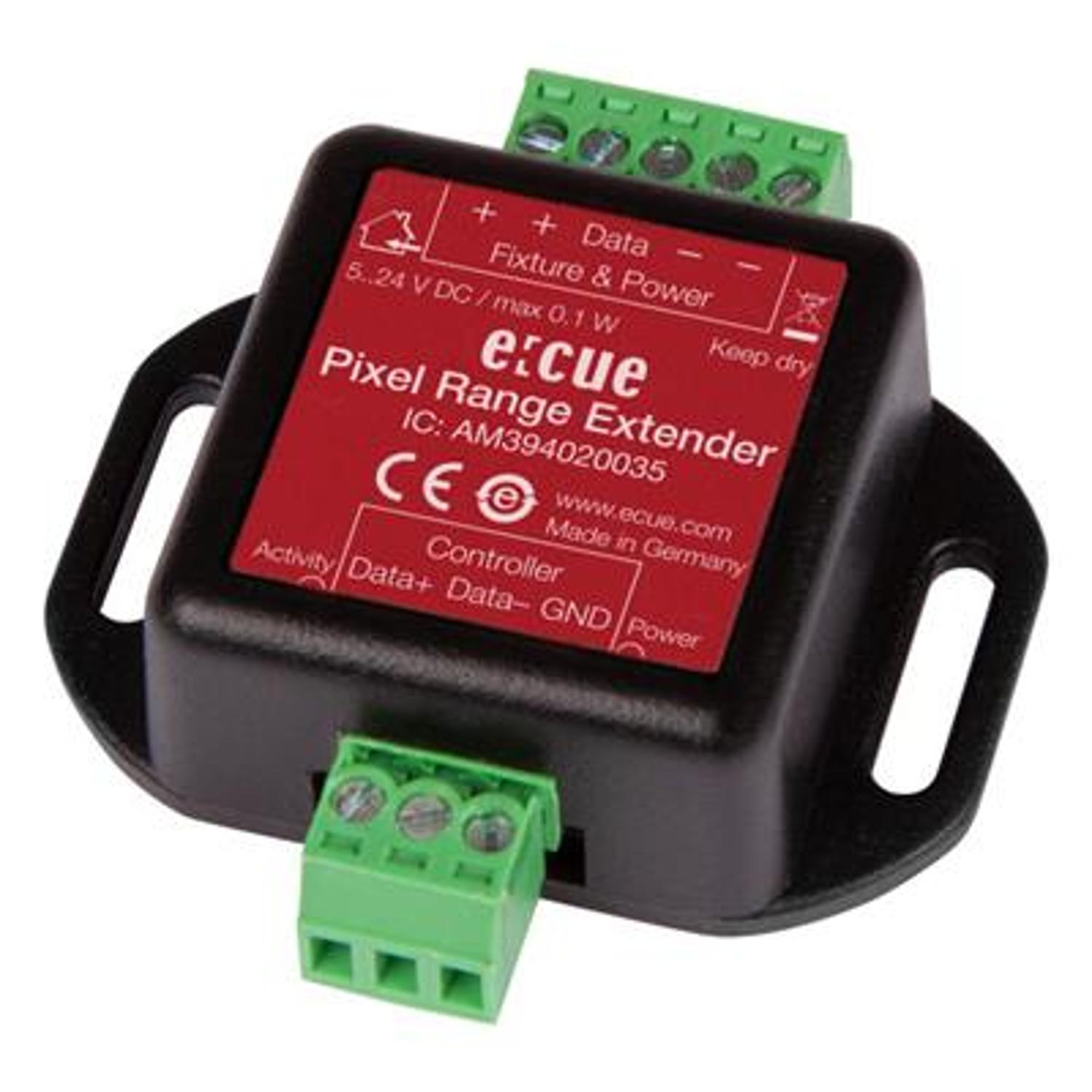 The Pixel Range Extender is a distance extender for one output of a SYMPL pixel Node. It is designed for bridging long distances between a SYMPL pixel Node controller and the LED fixture. Simply connect the Pixel Range Extender to your fixture and you can cover distances of up to 300 m (depending on installation setup, cable quality, and fixture type) to the controller.
