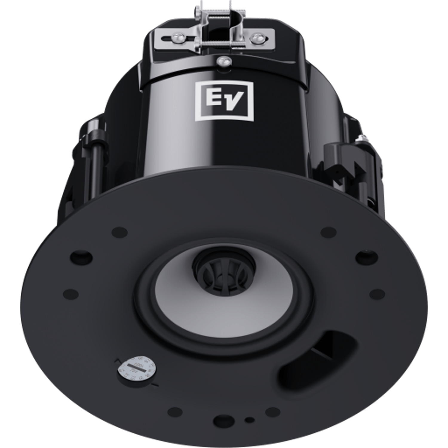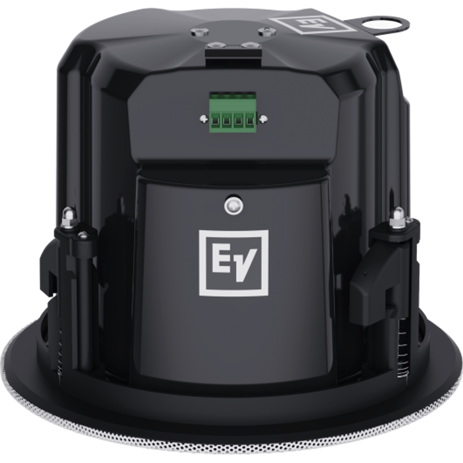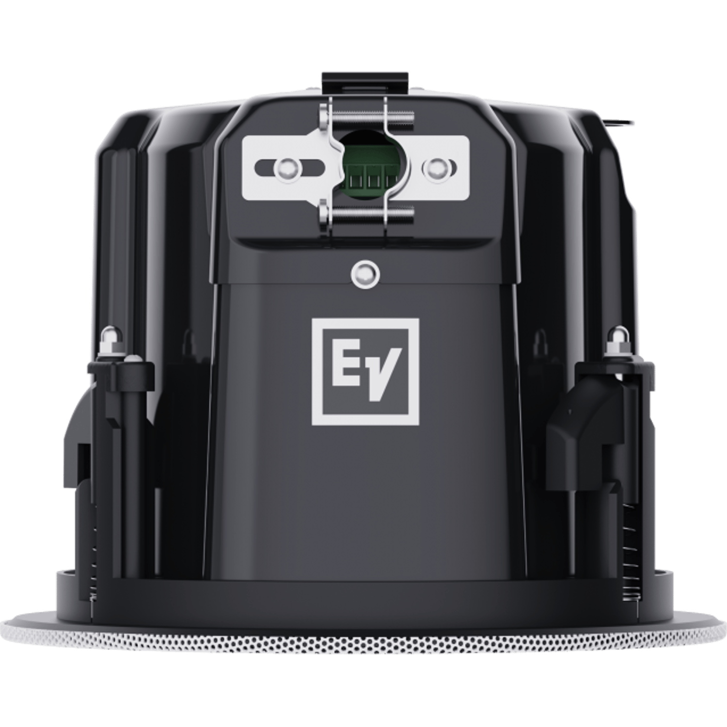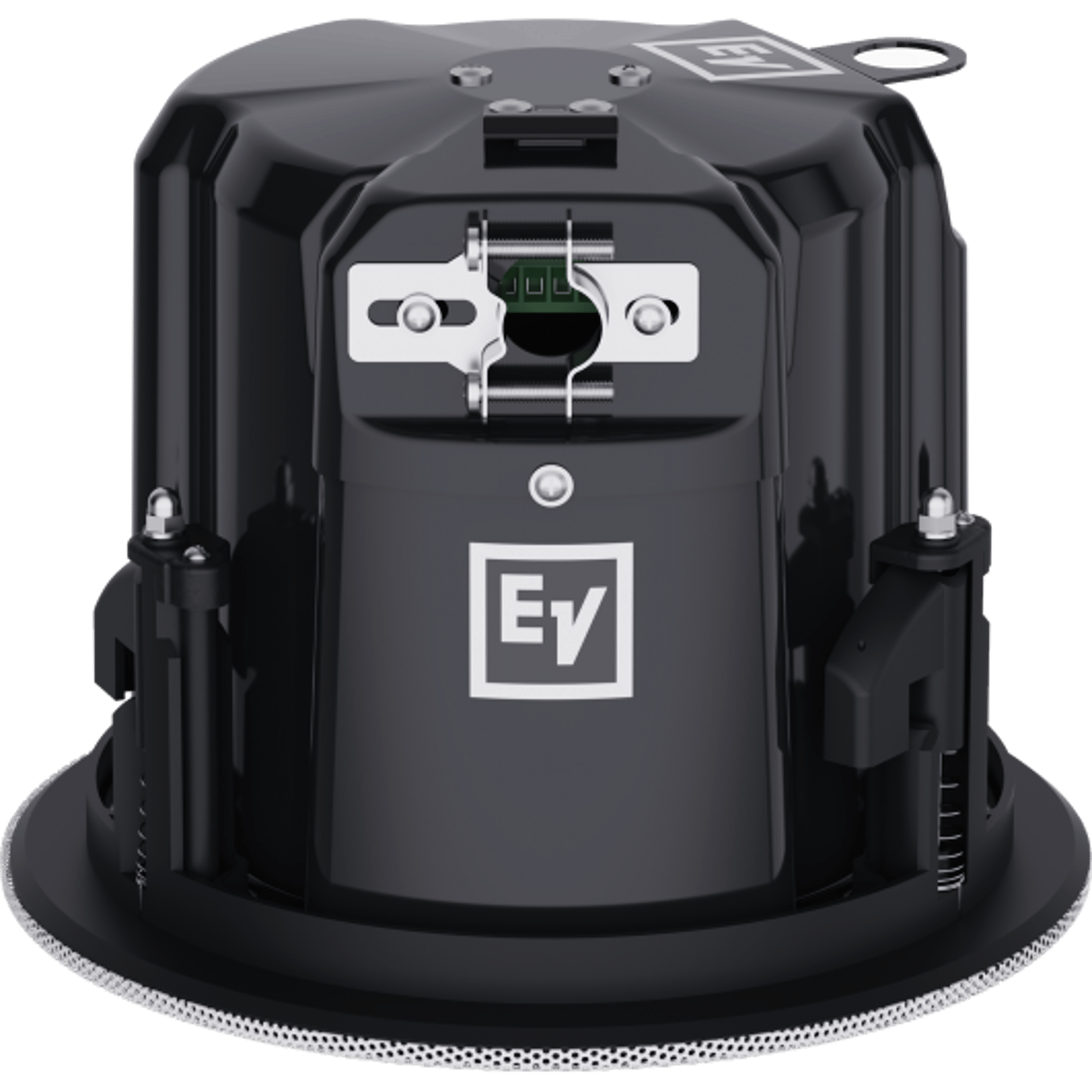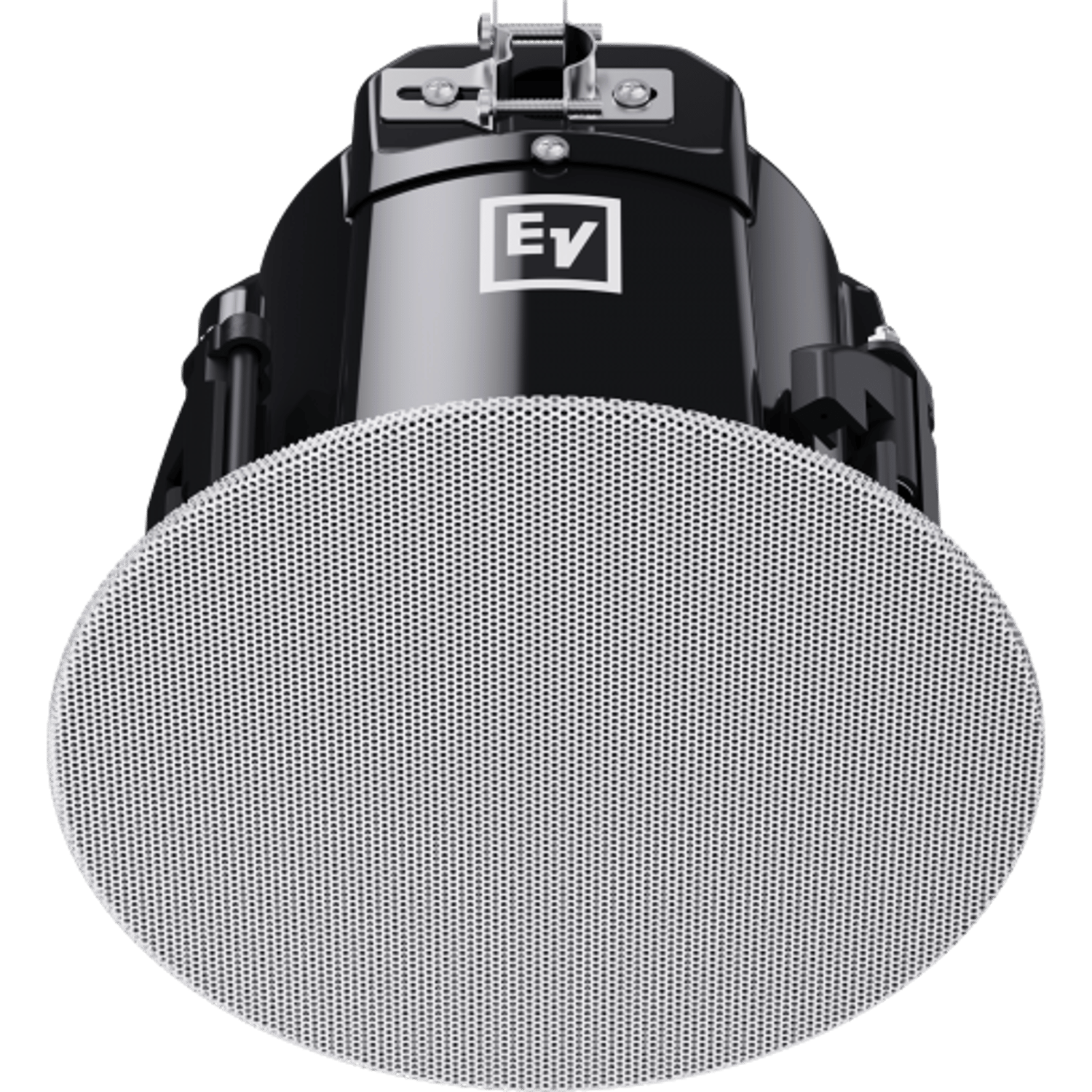 The Electro-Voice EVID-C4.2-G2 is a complete 4-inch coaxial two-way loudspeaker that offers excellent sound quality and outstanding reliability with firstclass aesthetics. It includes the EZ-Install system for quick and easy installations that are fast and reliable without compromising on safety. The loudspeaker features a point-source design to improve off-axis response and overall uniform coverage. The EVID-C4.2-G2 utilizes a transformer that offers a selection of 1.9 (70-V only), 3.8, 7.5, 15 or 30 watts delivered to the loudspeaker system using either 70-V or 100-V lines, or 8-ohm bypass. Selection is via a convenient switch on the front baffle. The perforated grille is finished in semi-gloss white powder-coated enamel. The baffle is constructed from UL 94V-0 rated ABS. The rear enclosure is constructed from heavy gauge coated steel. The low-profile enclosure makes it easy to mount in very tight spaces. A side terminalcover provides access to a 4-pin terminal block that allows direct connection to the speaker with 12-gauge and 3.3 mm2 -wire and provides pass through to additional speakers. A mounting ring and a tile bridge are included for safe suspension of the EVID-C4.2-G2 ceiling systems in a drop ceiling that uses mineral wool, or other fiberbased ceiling tiles. The wide range of EVID ceiling speakers has been designed to work together as a complete system in a variety of different ceiling constructions, and to be used in combination with other EVID surface-mount and in-wall speakers.