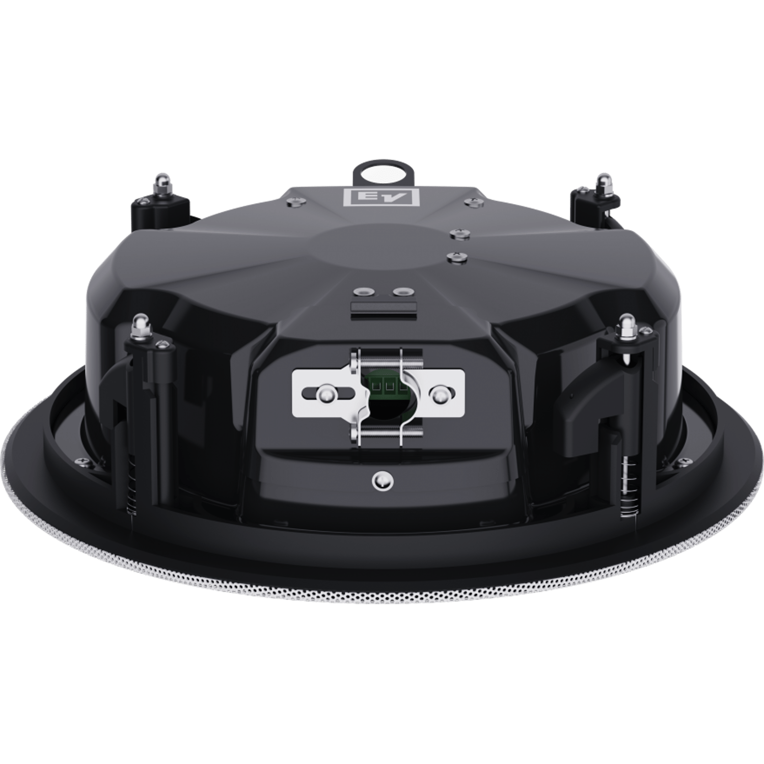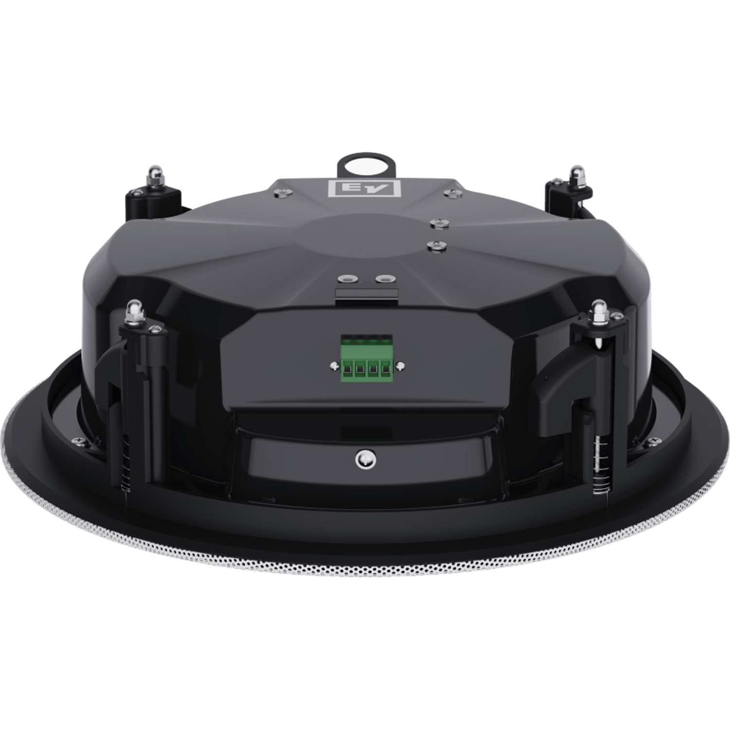 The Electro-Voice EVID-C4.2LP-G2 is a complete 4-inch coaxial two-way loudspeaker that offers excellent sound quality and outstanding reliability with firstclass aesthetics. It includes the EZ-Install system for quick and easy installations that are fast and reliable without compromising on safety. The loudspeaker features a point-source design to improve off-axis response and overall uniform coverage. The EVID-C4.2LP-G2 utilizes a transformer that offers a selection of 1.9 (70-V only), 3.8, 7.5, 15 or 30 watts delivered to the loudspeaker system using either 70-V or 100-V lines, or 8-ohm bypass. Selection is via a convenient switch on the front baffle. The perforated grille is finished in semi-gloss white powder-coated enamel. The baffle is constructed from UL 94V-0 rated ABS. The rear enclosure is constructed from heavy gauge coated steel. The low-profile enclosure makes it easy to mount in very tight spaces. A side terminalcover provides access to a 4-pin terminal block that allows direct connection to the speaker with 12-gauge and 3.3 mm2-wire and provides pass through to additional speakers. A mounting ring and a tile bridge are included for safe suspension of the EVID-C4.2LP-G2 ceiling systems in a drop ceiling that uses mineral wool, or other fiberbased ceiling tiles. The wide range of EVID ceiling speakers has been designed to work together as a complete system in a variety of different ceiling constructions, and to be used in combination with other EVID surface-mount and in-wall speakers.