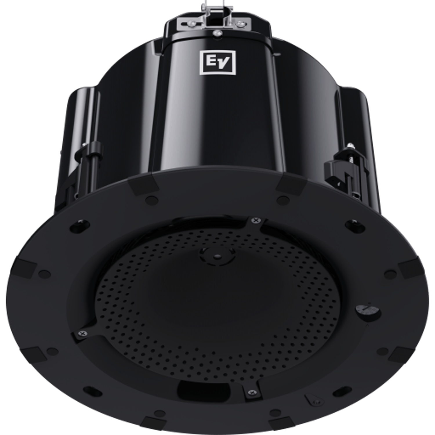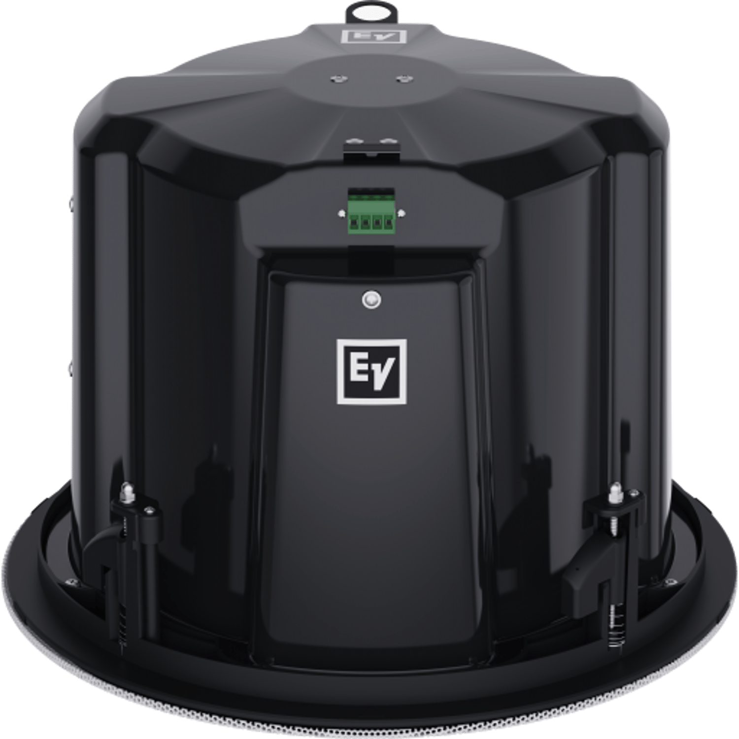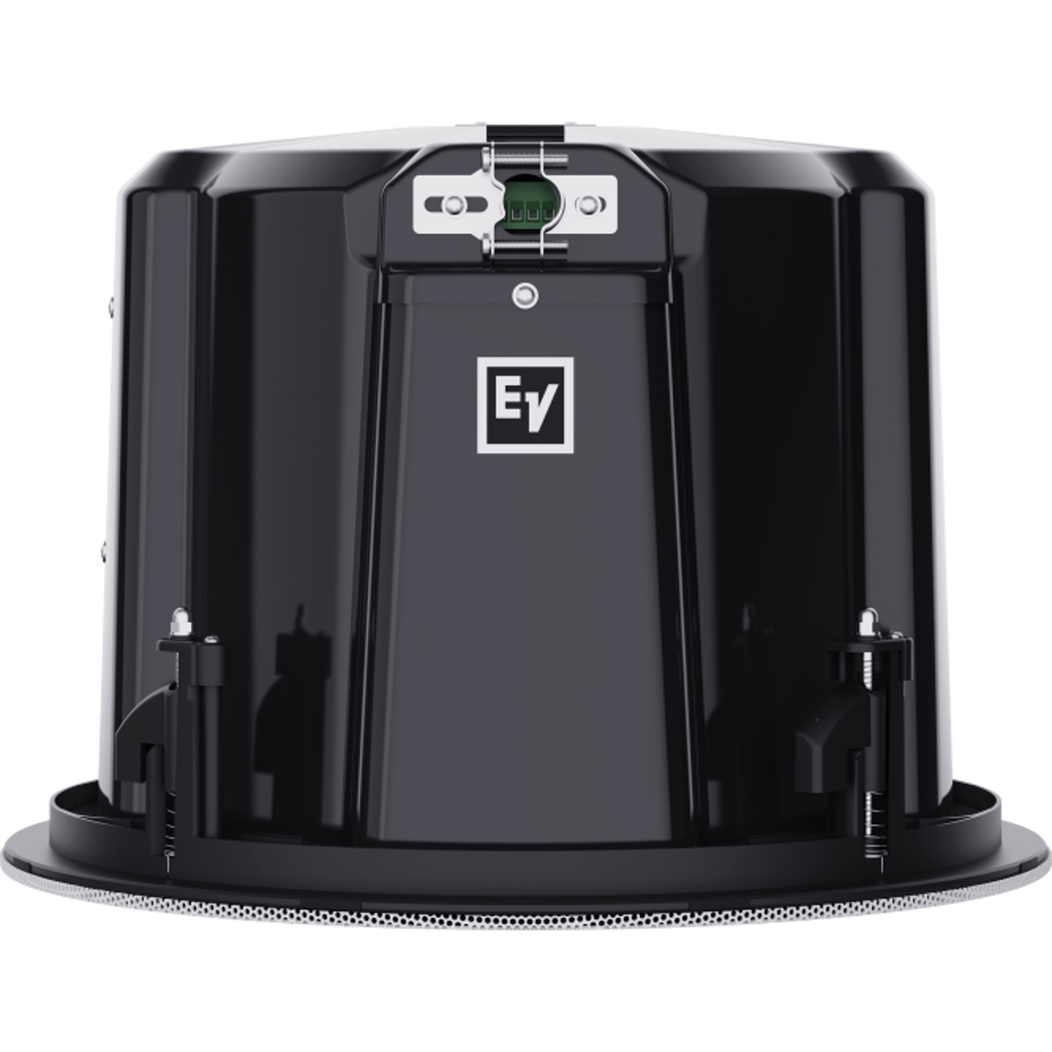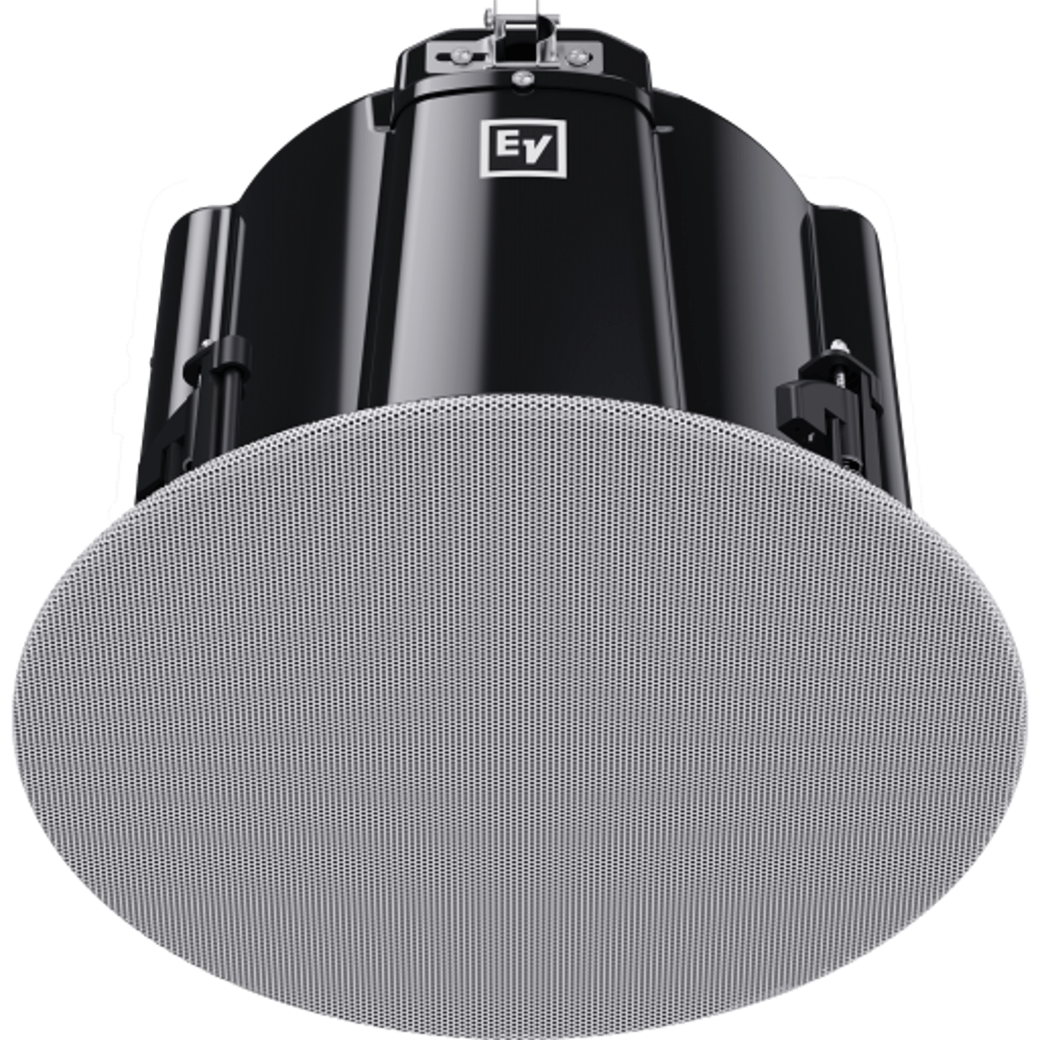 The Electro-Voice EVID-C8.2HC-G2 is a complete 8-inch coaxial two-way loudspeaker that offers excellent sound quality and outstanding reliability with firstclass aesthetics. It includes the EZ-Install system for quick and easy installations that are fast and reliable without compromising on safety. The loudspeaker features a point-source design to improve off-axis response and overall uniform coverage. The EVID-C8.2HC-G2 utilizes a transformer that offers a selection of 5.6 (70-V only), 11.3, 22.5, 45 or 90 watts delivered to the loudspeaker system using either 70-V or 100-V lines, or 8-ohm bypass. Selection is via a convenient switch on the front baffle. The perforated grille is finished in semi-gloss white powder-coated enamel. The baffle is constructed from UL 94V-0 rated ABS. The rear enclosure is constructed from heavy gauge coated steel. The low-profile enclosure makes it easy to mount in very tight spaces. A side terminalcover provides access to a 4-pin terminal block that allows direct connection to the speaker with 12-gauge and 3.3 mm2-wire and provides pass through to additional speakers. A mounting ring and a tile bridge are included for safe suspension of the EVID-C8.2HC-G2 ceiling systems in a drop ceiling that uses mineral wool, or other fiberbased ceiling tiles. The wide range of EVID ceiling speakers has been designed to work together as a complete system in a variety of different ceiling constructions, and to be used in combination with other EVID surface-mount and in-wall speakers.