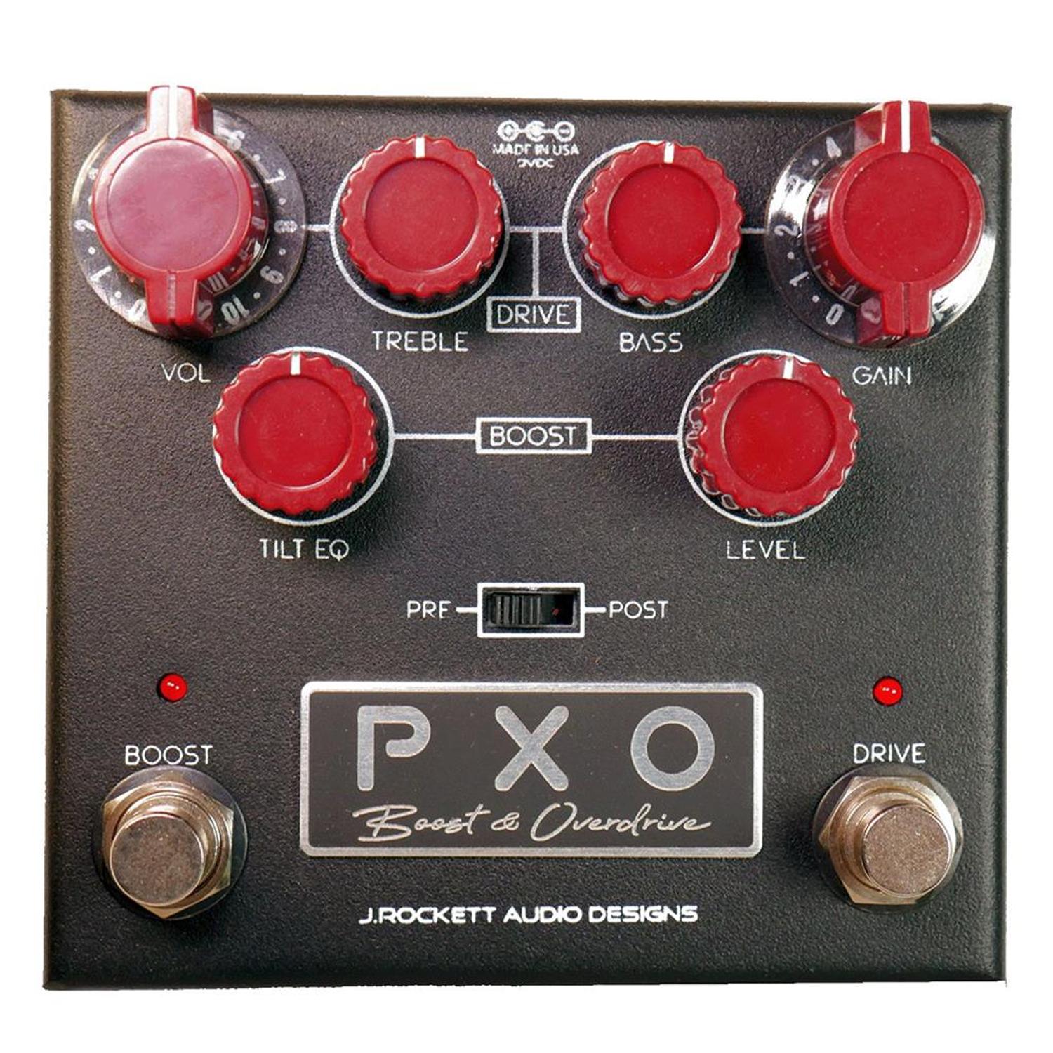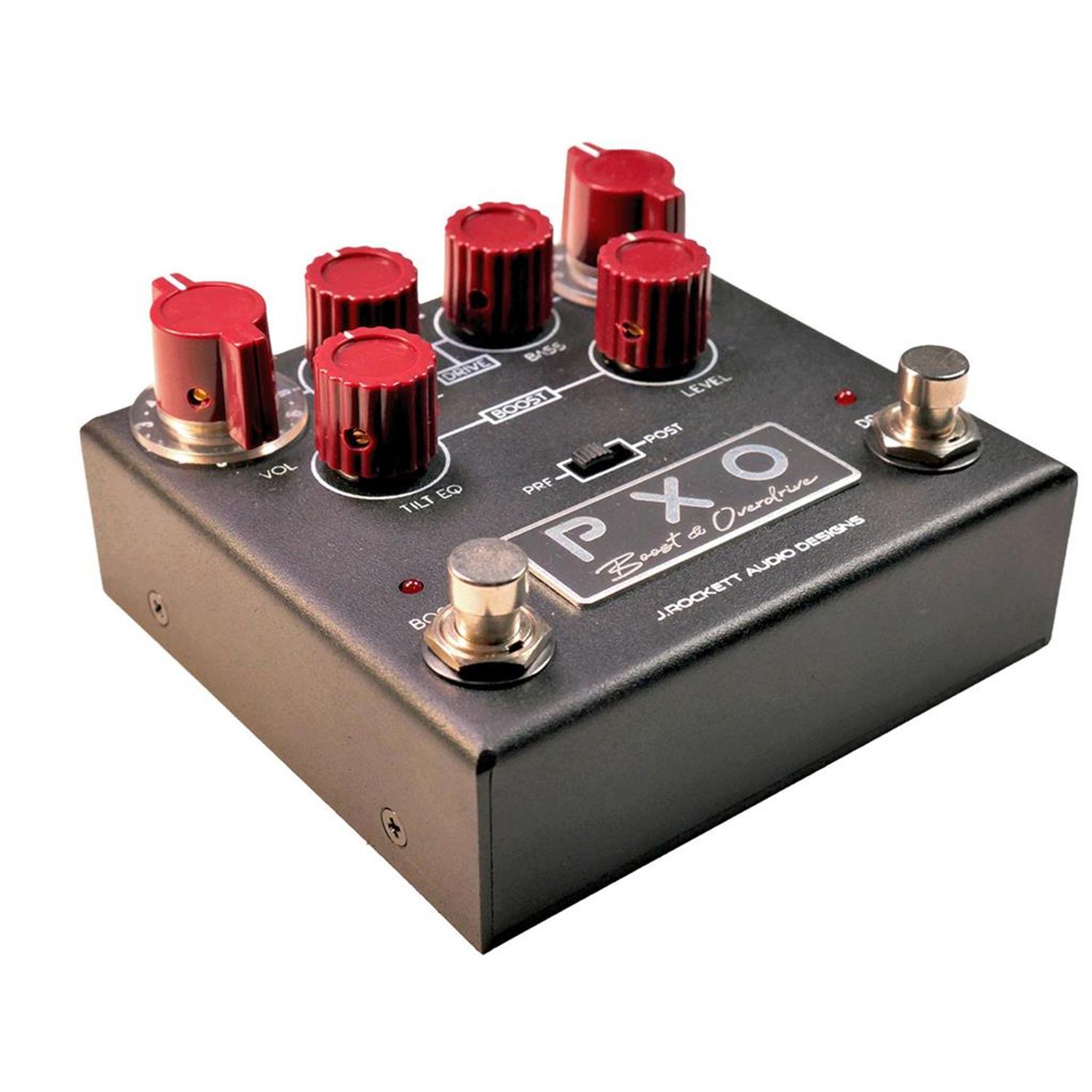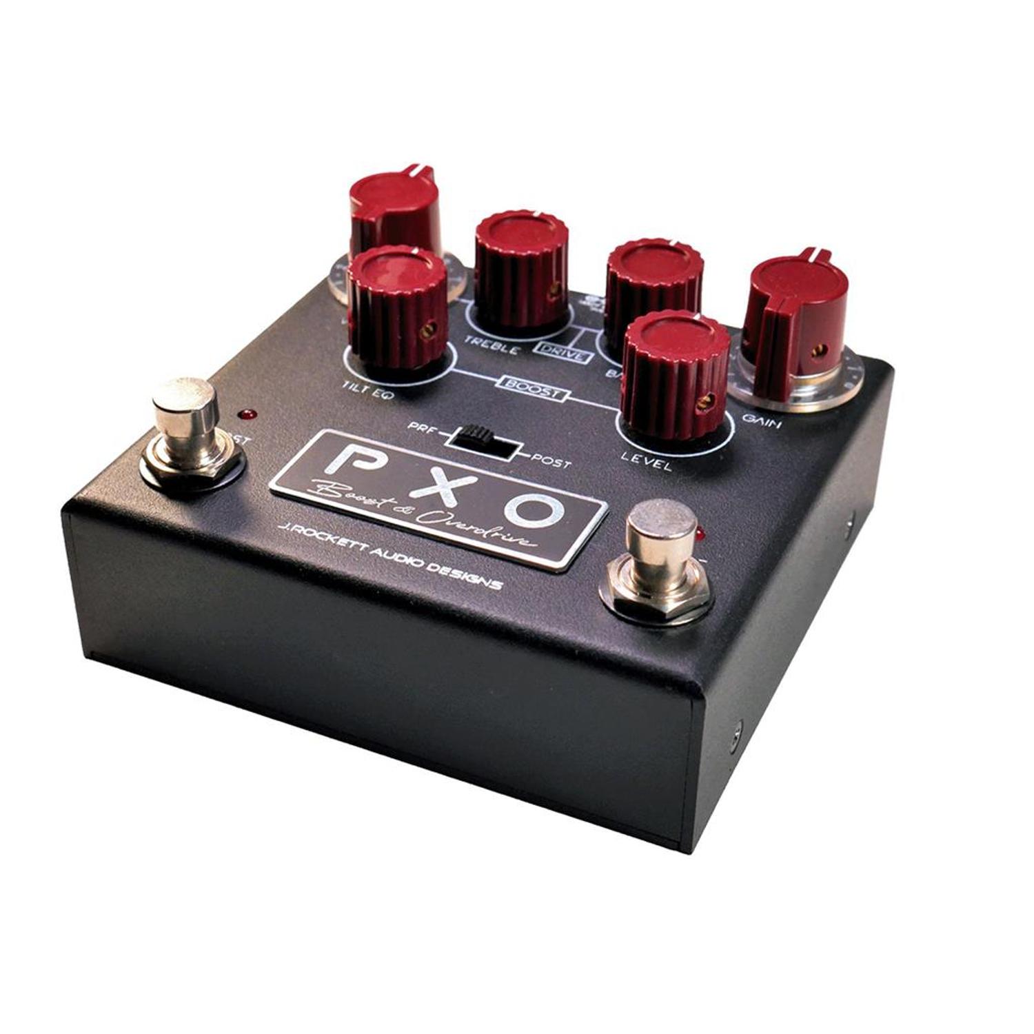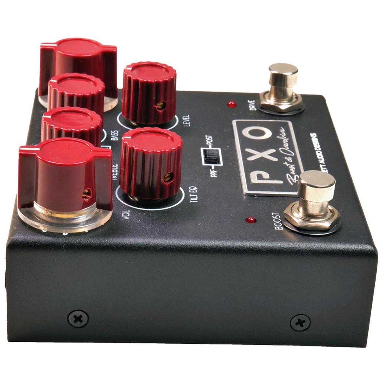 The PXO is an overdrive/boost where you can select pre or post giving you variety in how you want to boost, EQ and overdrive. We have provided standard controls on the overdrive side such as Volume/Gain/Overdrive and EQ but on the boost side you have a separate Tilt EQ that allows you to EQ with simplicity.