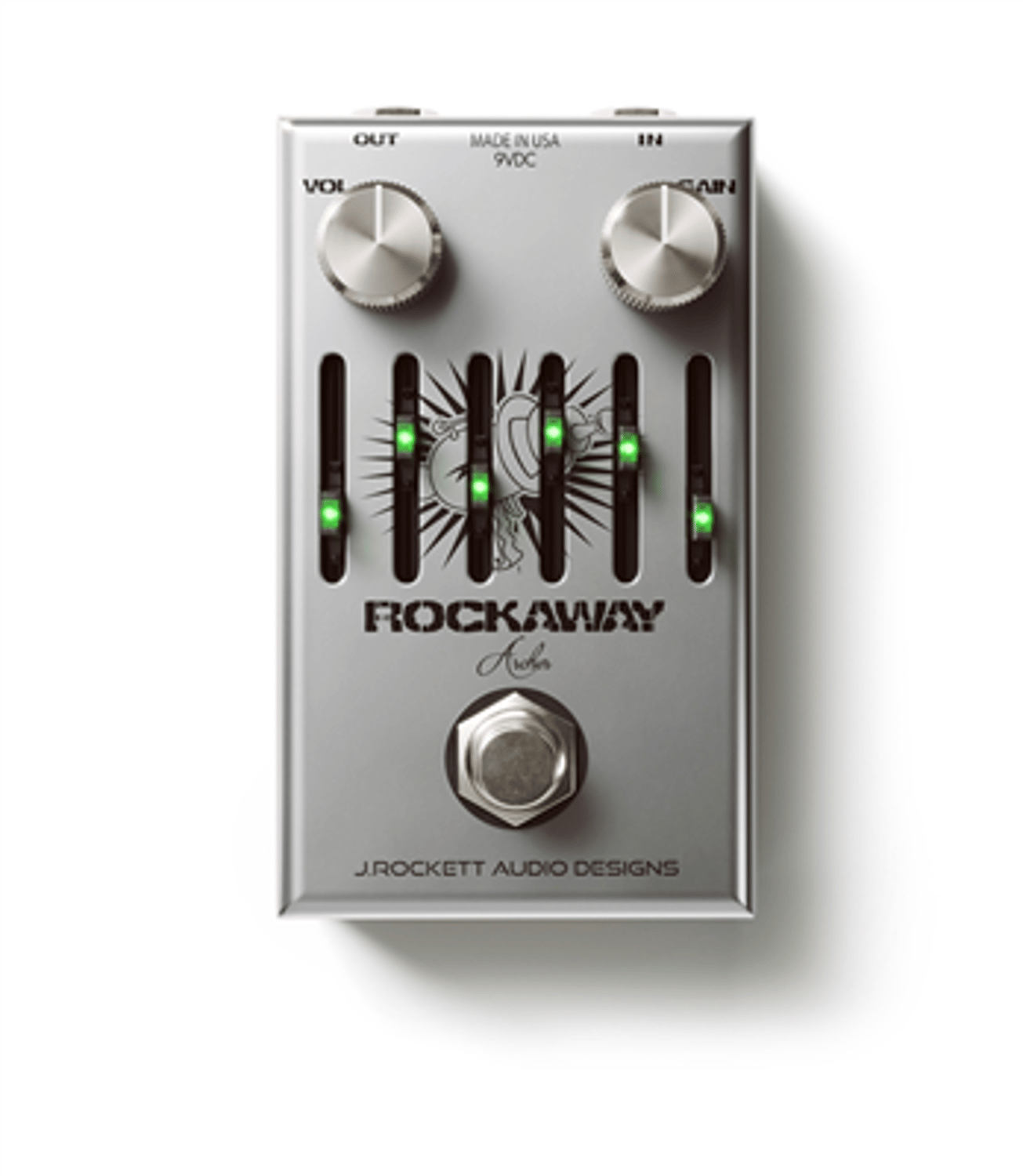 Six band graphic EQVolume and gain knobsI/O jacks at the head of the pedalThe settings include Up to 18dB of cut or boost at 6 different frequencies. Each frequency is increased by pushing its corresponding slider up on the pedal or decreased by pushing them down. This also adds or decreases volume. It is a great way to hit the front end of an amp harder than a stock Archer. The Rockaway Archer has an incredible variety of sounds due to the multitude of ways the EQ section can be used!