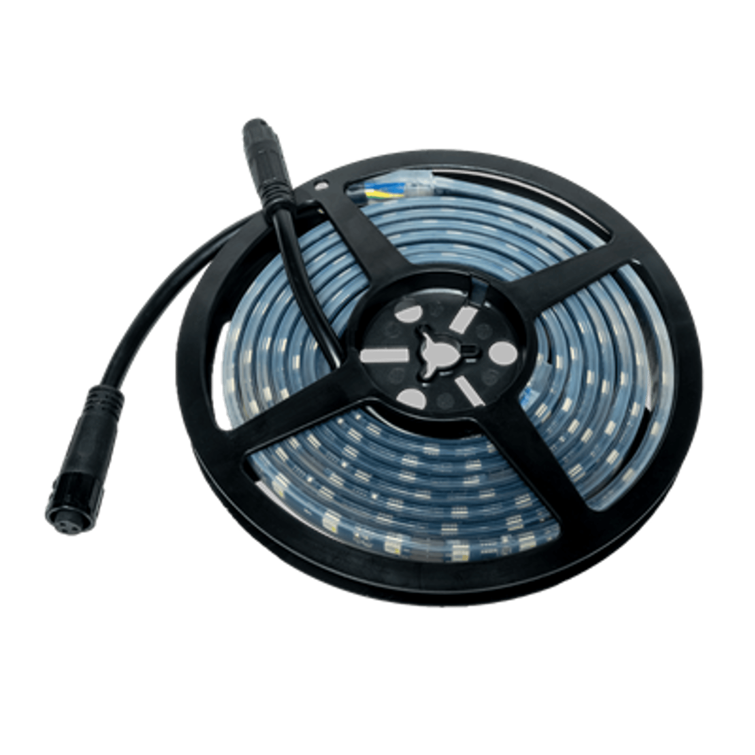 The PixlStripOne is a flexible re-usable strip for both indoor and outdoor use (IP65, full silicone coating). It comes in 4 different lenghts (120/240/480 and 960cm), with the according clip-on filters (Blackwave style) and a clip-in aluminum black profile and the necessary mounting hardware (wall mount bracket, fixing tape ..).
