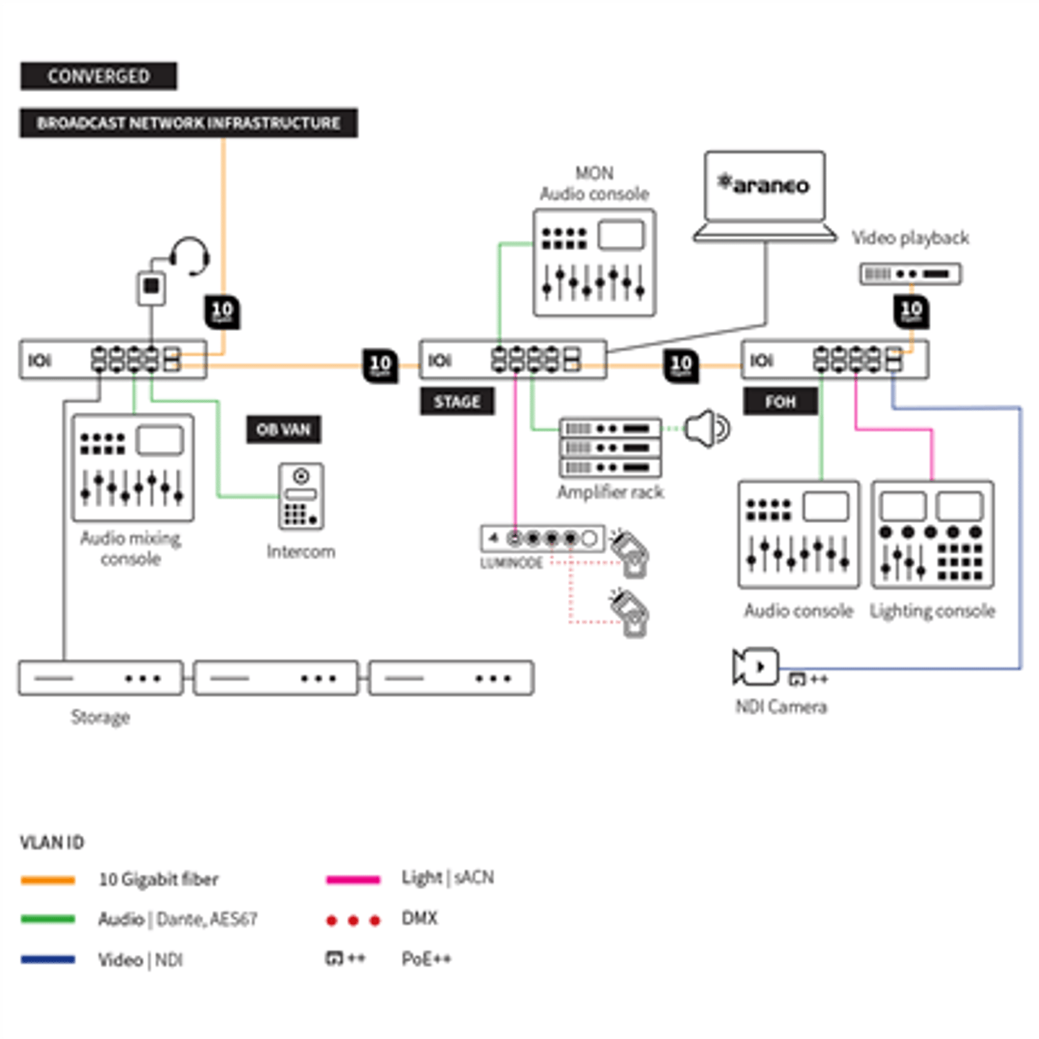 10Gb connectivity allows full network convergence of lighting control, audio, intercom, and video.