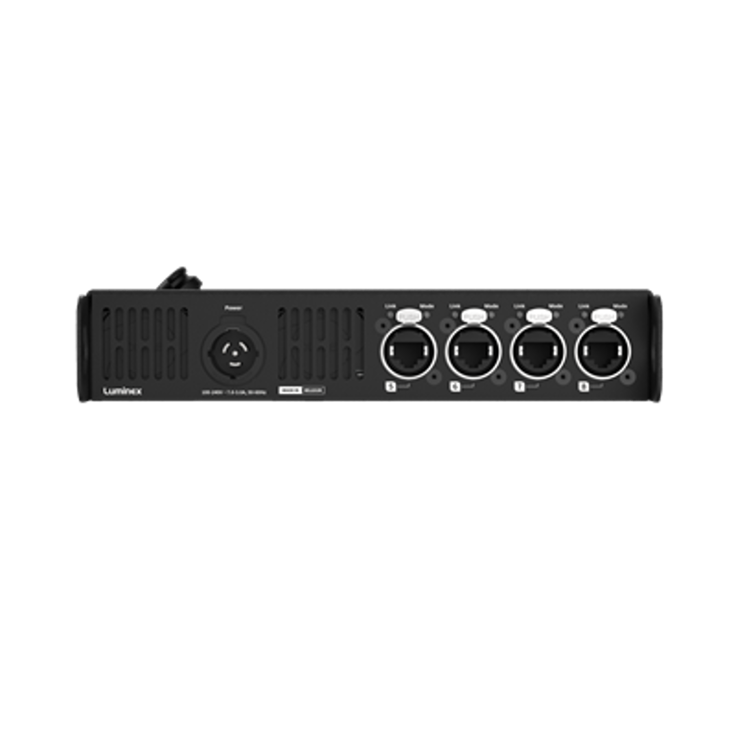 Most suitable applications: Touring applications, Rack mount and Truss mount (through 2x M10) applicationsPoE: PoE ++ OptionalRLinkX (Link redundancy): YesGroups (VLAN segmentation): YesMultiLinkX (Link aggregation): Yes (With future FW upgrade)Profile manager: YesMemory: Flash 1Gb RAM – 8Mb NOR flash 4Gb EMMC storageMAC address table: 16384 entriesAddress learning / Aging: Self learning, Auto agingSwitching throughput: 56GbpsJumbo frames: MTU up to 12000IGMP support: Yes (V1/V2/V3)IGMP snooping: Yes, enabled by defaultPort sensing: Auto negotiation (Copper ports)Auto crossover: MDI / MDIXAuto sensing: Full or Half Duplex (Gigabit is Full Duplex)ConnectivityEthernet connectivity: 8 x EtherCon connectors (4x front, 4x rear) (1Gbps)Fiber connectivity: 2 x rugged fiber connectors (optional) (10Gbps/1Gbps) (independent from other ports) (front panel)Ethernet port speed: 1GbpsSerial: NoPowerPower connectivity: 1 x PowerCON True 1 inPower input: 100-240VAC, 50-60HzPower consumption: TBCFuse: NABackup power input: NoBackup PoE power input: NoPoE: PoE ++ OptionalSupported protocols: Dante©, RAVENNA/AES67©, Ethersound©, Q-SYS/Q-LAN, sACN, ArtNet, MANet2, HogNet, RTTrPL (BlackTraX), IEEE 802.1p CoS (Class of Service), DiffServ (DSCP), PoE (802.3af) (optional), PoE+ (optional), PoE++ (802.3bt) (optional), IEEE 1588 PTP V2, AVB/MILANSound protocol compliance: Yes (low jitter)Ethernet compliance: IEEE 802.2, IEEE 802.3, IEEE 802.3u, IEEE 802.3x Flow Control, IEEE 802.3ab Gigabit Ethernet, IEEE 802.3af PoE(optional), IEEE 802.3at PoE+(optional), IEEE 802.3bt PoE++ 90W(optional), IEEE 802.1p CoS, IEEE 802.1d Spanning Tree, IEEE 802.1w Rapid Spanning Tree, EEE 802.1s Multiple Spanning Tree, IEEE 802.1Q VLAN, IEEE 802.1ab LLDP, IEEE 1588-2008 PtPv2, IEEE 802.1 BA-2011 AVBProtocolsConfigurationDisplay and jog: NoConfiguration: Through the built-in web server, Network wide configuration through Araneo softwareStatus LEDs: Global status LEDs: Device, power, PoE power and mode Port status LEDs: PoE, groups, link/activity and port speed Dark mode availableColored RGB LEDs: YesPhysicalMounting: Rack, Truss (2x M10)Enclosure: Robust metal housingDimensions (W x D x H): 220 x 330 x 44 mm (8,66" x 13" x 1,73")Weight: 3,4kgPackaging: TBCEnvironment: Operating temperature: 0 to +50 °C Storage temperature: -10 to +70 °C Humidity (non condensing): 5 to 95% RHNoise level @1m: TBCBTU: Certificates/Approvals: Pending: cSGSus Mark (UL), CE Mark, UKCA Mark, CB certificate, RoHSStandards: Pending: IEC 62368-1, UL 62368-1, CAN/CSA C22.2 No. 62368-1, EN 62368-1, FCC Part 15 CFR 47, CAN/ICES-003, EN 55032, EN 55024***Check our DOWNLOADS section below for more info.***