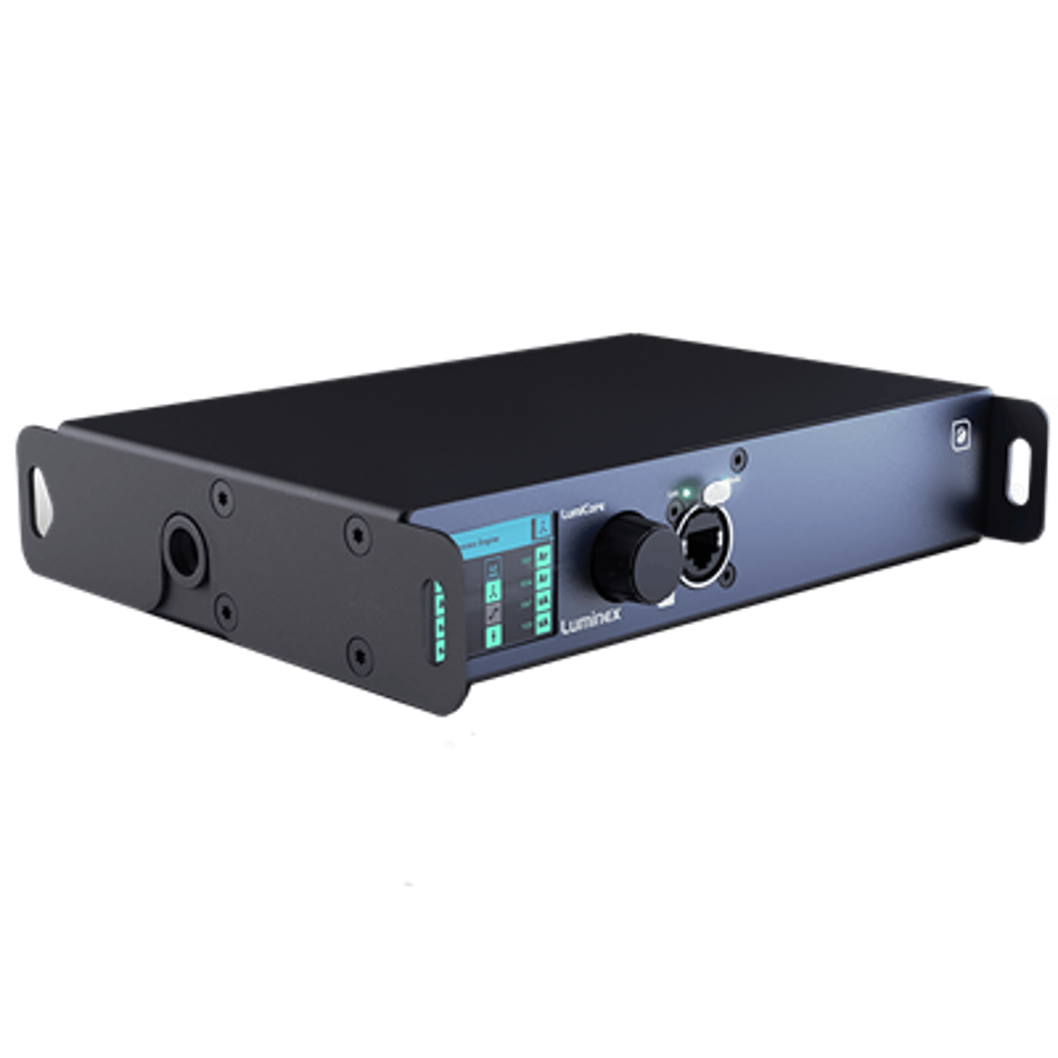 SpecificationsDMX/RDM connectivity: NoneEthernet connectivity: 2x shielded Neutrik Ethercon connectorContact closure: YesPower connectivity: 1x Neutrik powerCON TRUE1 Ethernet (PoE)DMX FeaturesDMX protocols: NADMX port direction: NADMX port isolation: NADMX timing: NANetwork FeaturesEthernet protocols: Art-Net™ (1-4), sACN ANSI E1.31, RTTrPL (BlackTraX), KiNET v1,v2Ethernet port speed: 1GbpsPort sensing: Auto-negociation, MDI / MDIXSplit management interface: YesGroups (VLAN) support: YesKey FeaturesProcess engines: 64 (LumiCore 64), 32 (LumiCore 32), 16 (LumiCore16)Merging engine: HTP LTP Backup Switch X-Fade CustomSoftpatch: YesMaster/Limit: Proportional LimitTrigger system: YesReRoute: YesProfile manager: YesSnapshot: YesDMX Redundancy: NAMonitoring software: LumiNet Monitor V2 (free)Configuration: Through the built-in web server or with the front end display menuStatusDisplay and jog: YesStatus LEDs: Ethernet Port link/activity LED and mode LEDPowerPower input: 100-240VAC 50-60Hz PoE (802.3af)Power consumption: Maximum 13WPower redundancy: YesEnvironmentalOperating temperature: 0 to +50°CStorage temperature: -10 to +70°CHumidity (non condensing): 5 to 95% RHPhysicalEnclosure: Robust metal housingMounting: Rack, TrussDimensions (W x D x H): 220 x 175 x 44 mm (1/2 19" x 8,7" x 1,7")Weight: 2,4 kgPackaging: 530 x 330 x 80 mm (21" x 13" x 3,15")ApprovalElectromagnetic emissions and immunity: EN55032 class A EN55035 EN61000-3-2 EN61000-3-3 EN61000-4-2 EN61000-4-4 EN61000-4-5 EN61000-4-6 EN61000-4-8 EN61000-4-11 FCC Part 15 CFR 47 class A ICES-003 Issue 6Safety: IEC 62368-1 EN 62368-1 UL 62368-1 CAN/CSA-C22.2 No. 62368-1 CECertificates: cSGSus Mark CE CB certificateGreen: RoHS REACHRead more