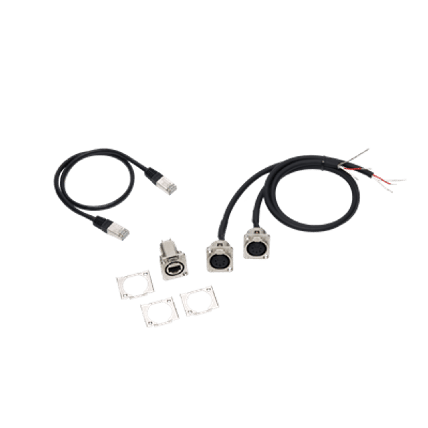 2x cable DMX/XLR5 (length 0.5m), 1x cable RJ45, 1x built-in socket etherCON/RJ45 to RJ45