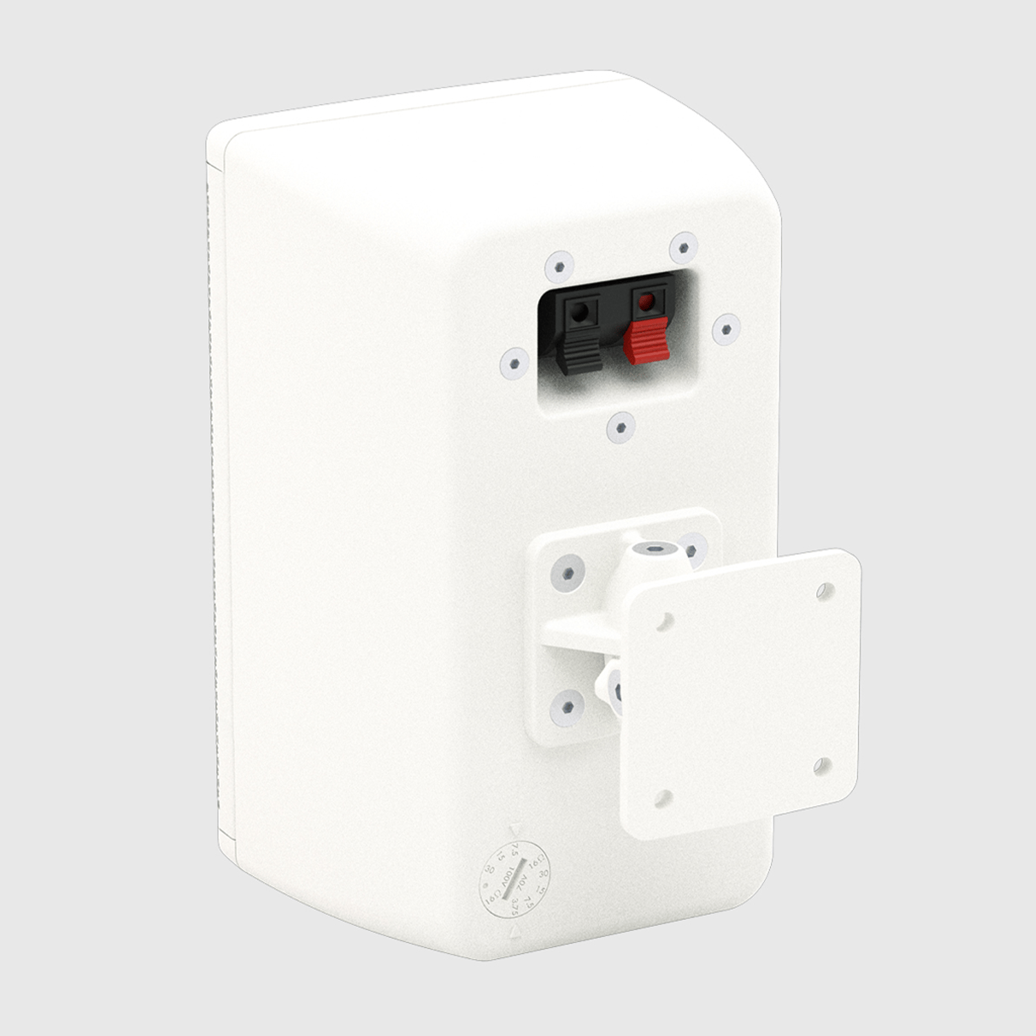 The Martin Audio Adorn A40T incorporates a high-quality transformer for 70V/100V line operation, with transformer taps selected by a rotary switch. The recommended amplifier is the VIA5002 in conjunction with a suitable line transformer. For full-bandwidth protection, the low and high-frequency sections are individually protected against overload.Available in black or white as standard, it can be readily painted to match any interior design style, and can be wall-mounted vertically or horizontally using the wall bracket supplied. In addition, for general outdoor use the cabinet only requires the additional waterproof connector cover.
