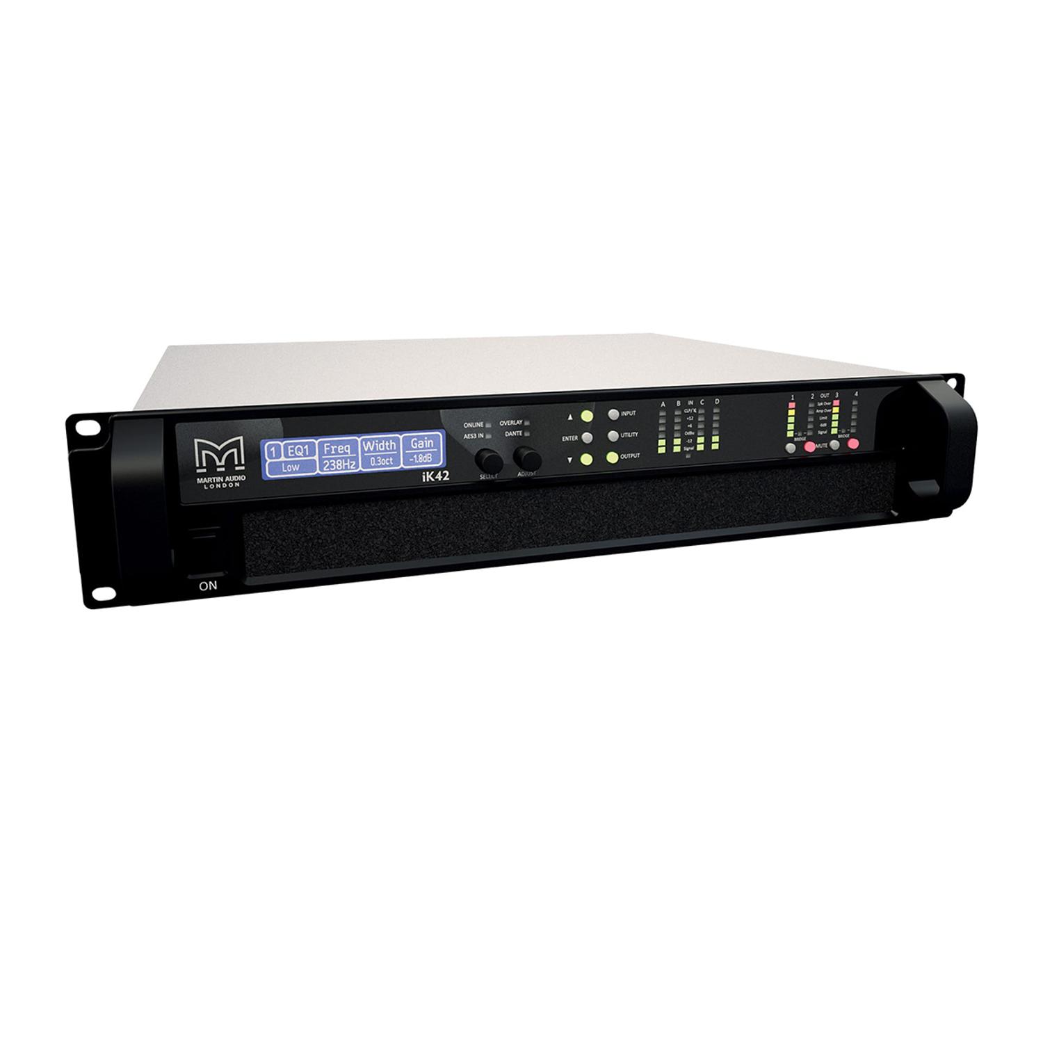 The iKON iK42 is an advanced 4-channel power amplifier which combines very high power density with superb audio performance, state-of-the-art DSP and network control. A dedicated controller amplifier for Martin Audio Wavefront Precision line arrays and XE Series stage monitors, the iK42 can also provide multi-channel amplification across the Martin Audio loudspeaker range.