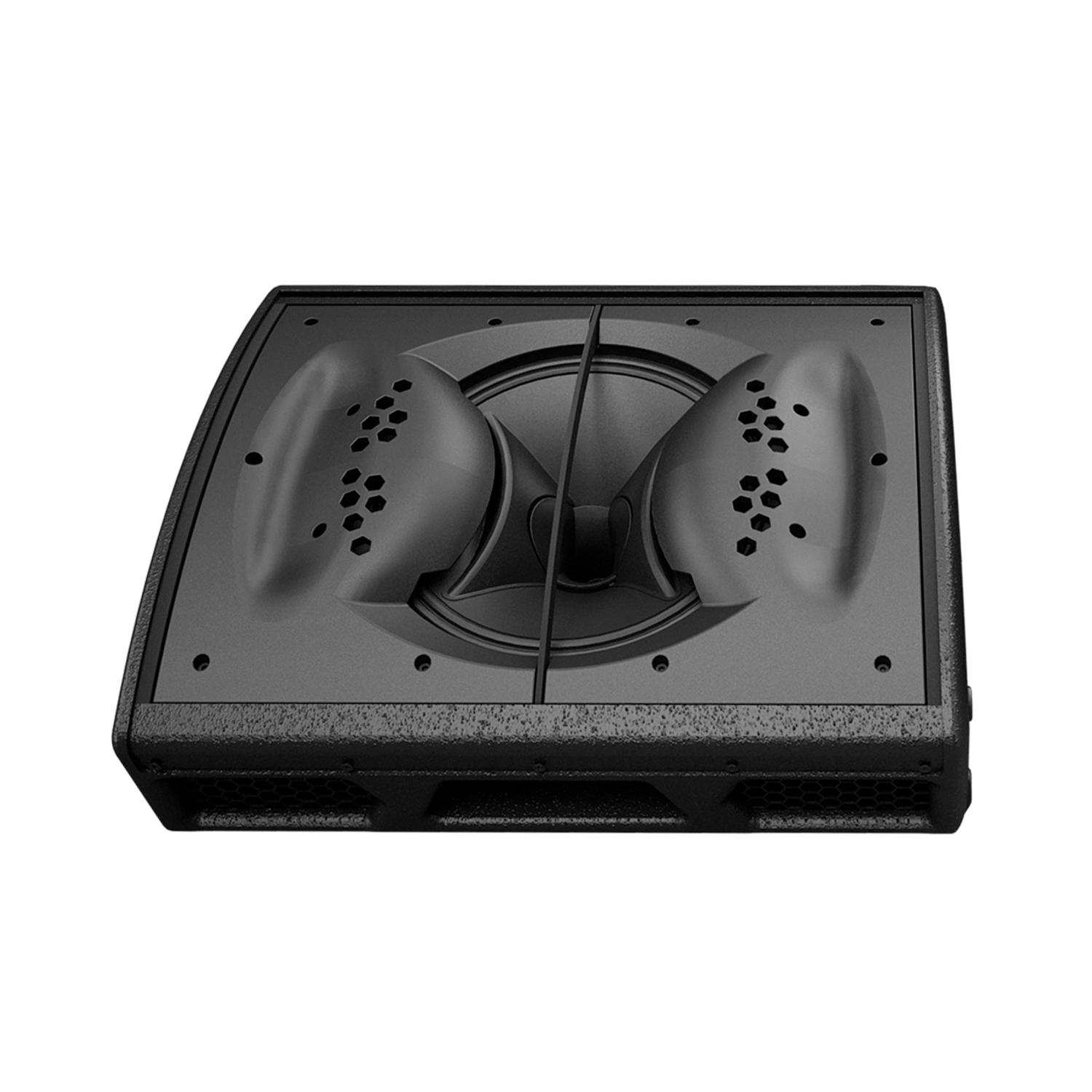 Frontal reflex ports couple with the floor to increase LF output and inbuilt risers can be used to increase the monitoring angle for longer-throw applications.