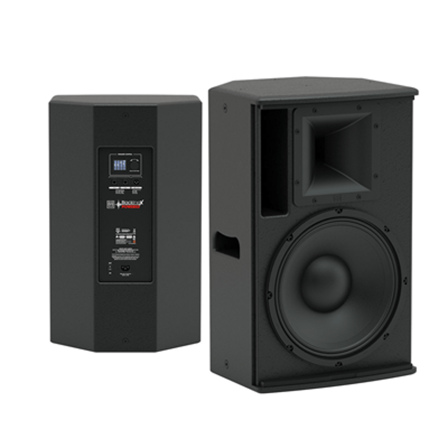 The Class D amplifier module delivers up to 1000W LF + 300W HF peak output to the drivers and the sophisticated DSP functions are controlled by a rotary interface and multi- function, easy-to-use colour screen on the rear panel. The DSP features include crossover function, a three-channel mixer with three-band EQ on each input channel and selection of three voicing presets and operating modes for flexible usage without external processing. The LF and HF drivers are independently protected by RMS and peak limiters for longevity and consistency of performance.