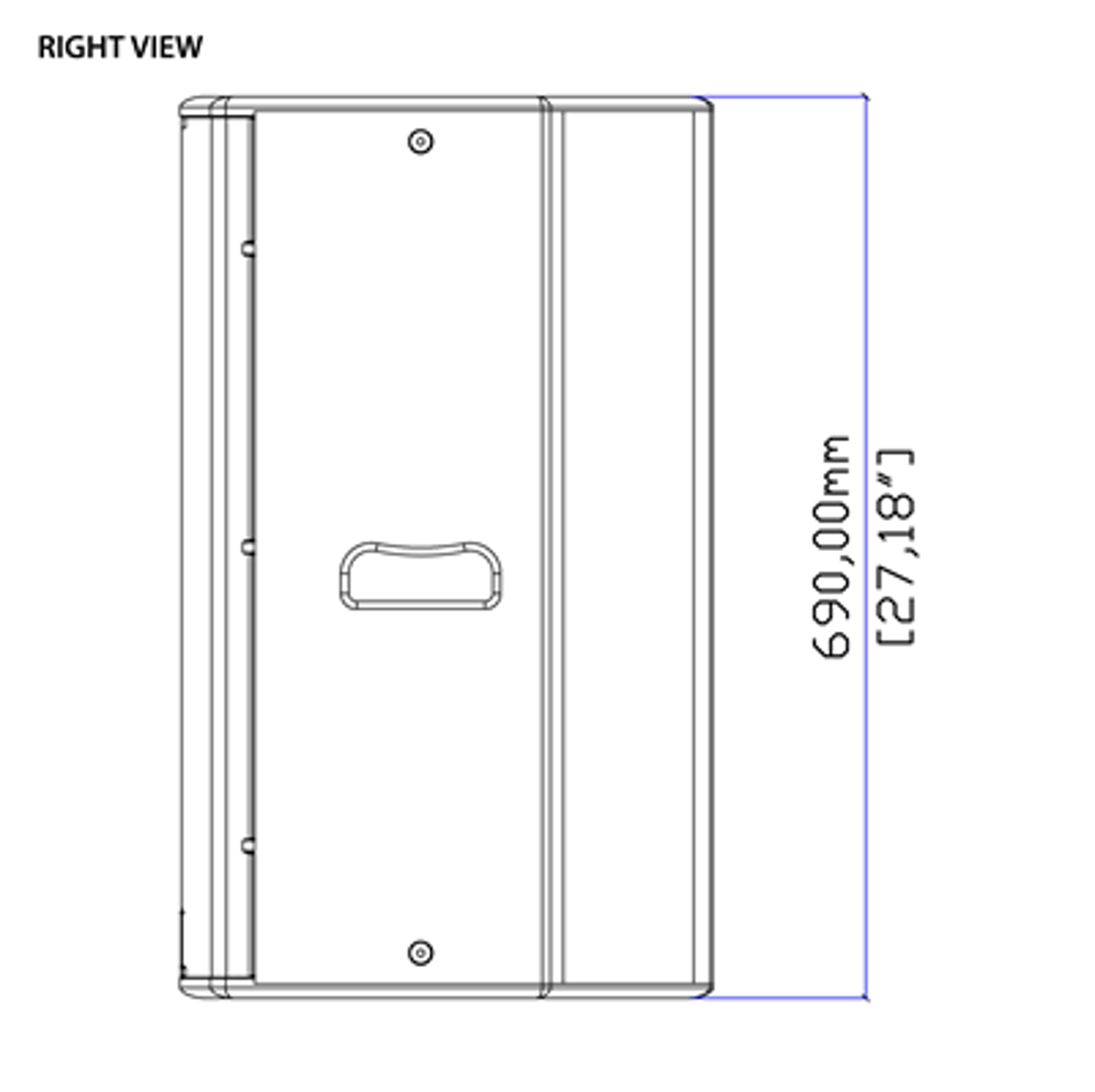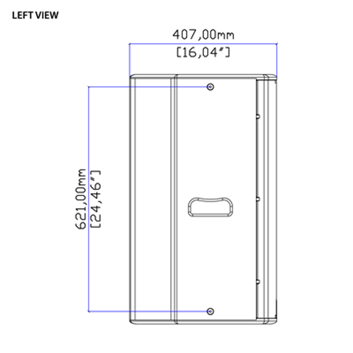 The symmetrical, multi-angle enclosure is manufactured from birch and poplar plywood and finished in textured black paint. It is fitted with M8 inserts for eyebolt suspension plus a pole-mount socket with a removable cap. Its cloth-backed protective steel grille is a spring-fit into the sides of the enclosure for easy access to rotate the HF horn.