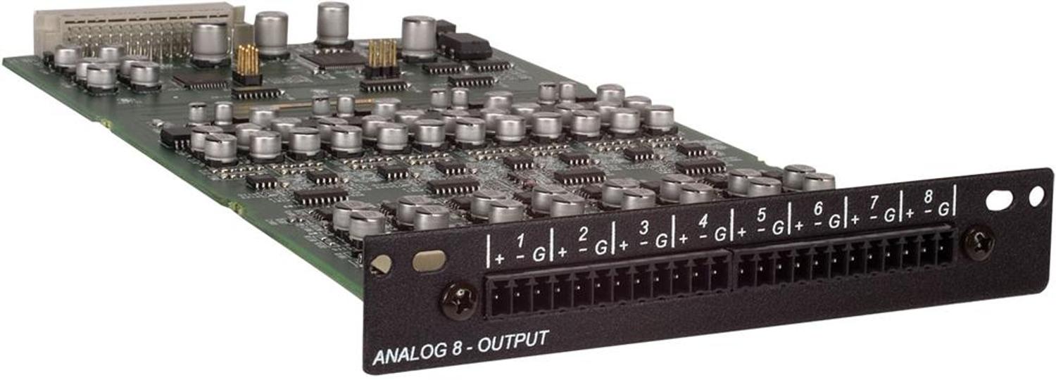 The NIO™-8o Line Output Card is an 8-channel line-level analog output device for use in NION® DSP frames. Modular analog audio output card and digital to analog converter for the NION Series of digital audio processing products. Depending on the NION model up to 4 NIO-8o cards may be loaded in a NION DSP. Includes 8 balanced line-level analog outputs terminated on mini Euro connector header. Includes 8 Euro connector blocks Includes NWare control of analog functions Eight Line Level output audio channels 24 bit A/D 48kHz or 96kHz audio sampling rate supported High reliability DIN Connector to backplane, using slide rail for alignment Mini-Euro Connectors for easy input connectionRead more