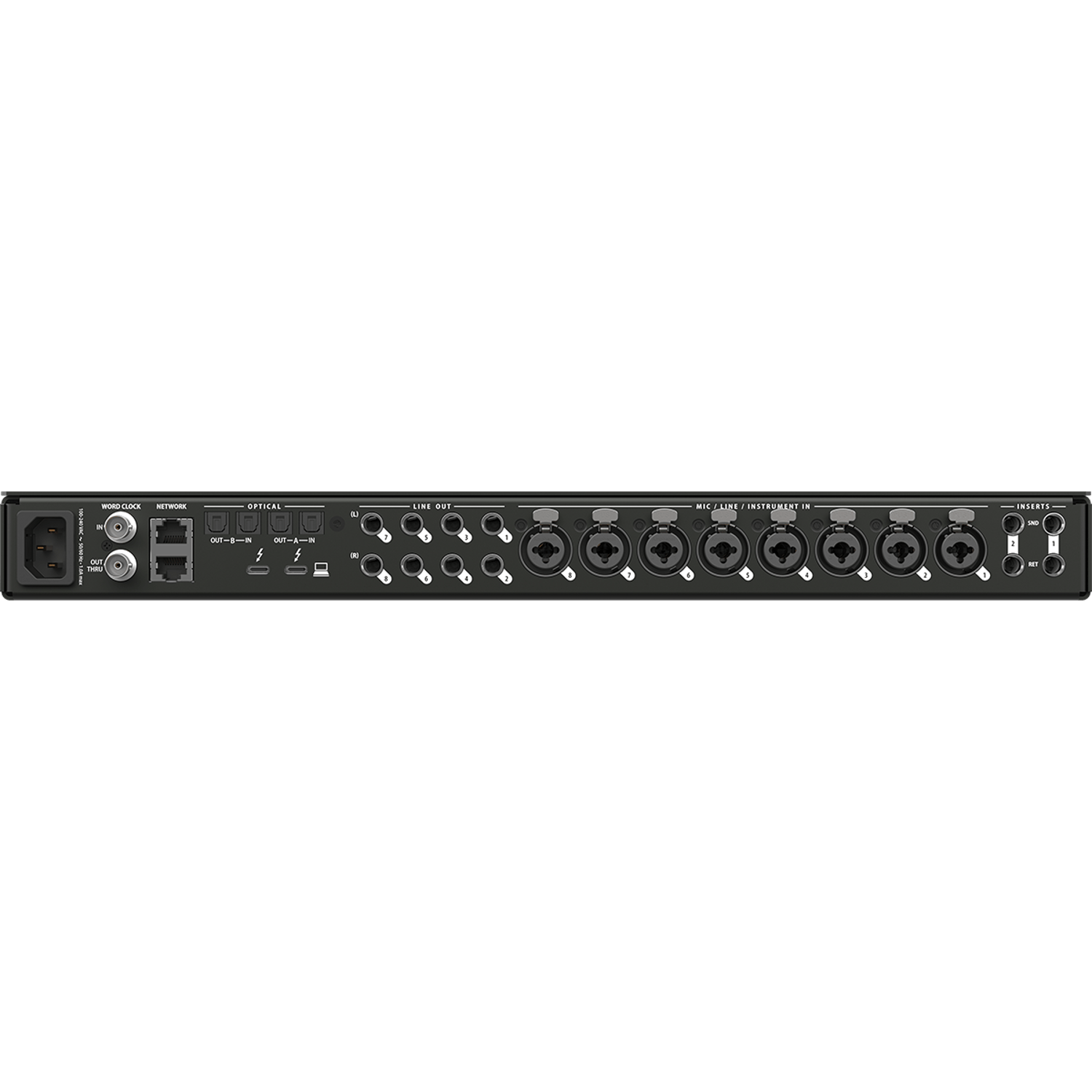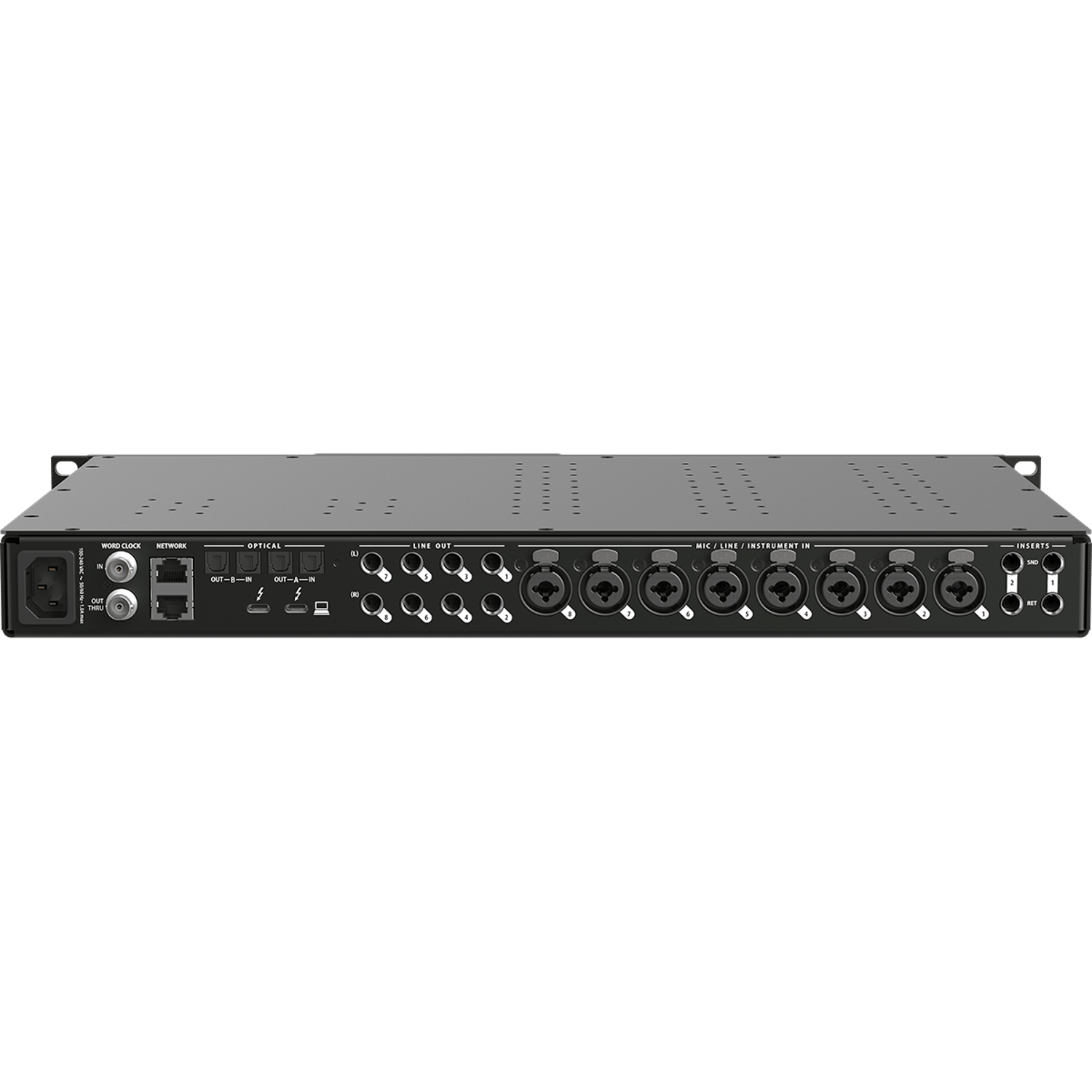 Transparent mic channels and hi-Z guitar inputsCapture your recorded material in its truest, most natural form with -114 dB THD+N, 118 dB dynamic range and -129 dBu EIN performance. Each mic channel has individual preamp gain, pad, 48V phantom power and remote control from your computer or iOS device. Each combo jack alternately provides a 1/4-inch high-impedance TS guitar input for DI tracking and reamping.