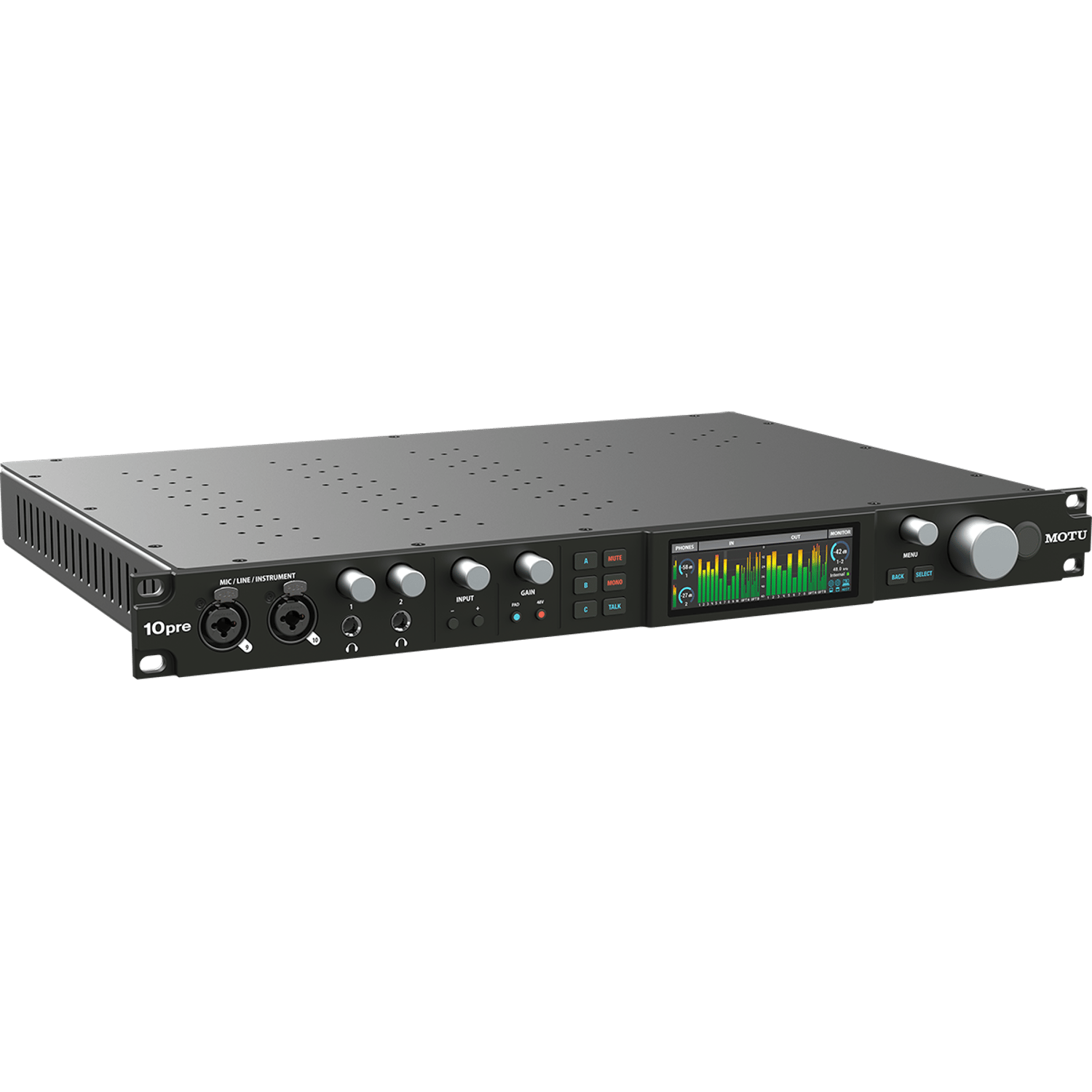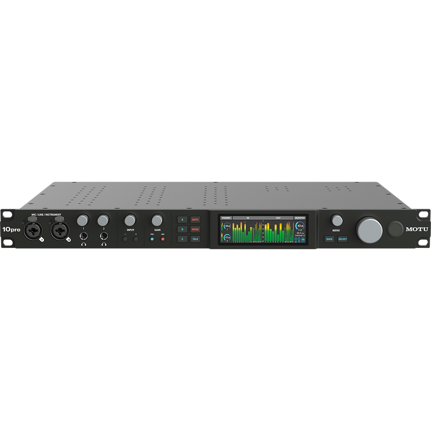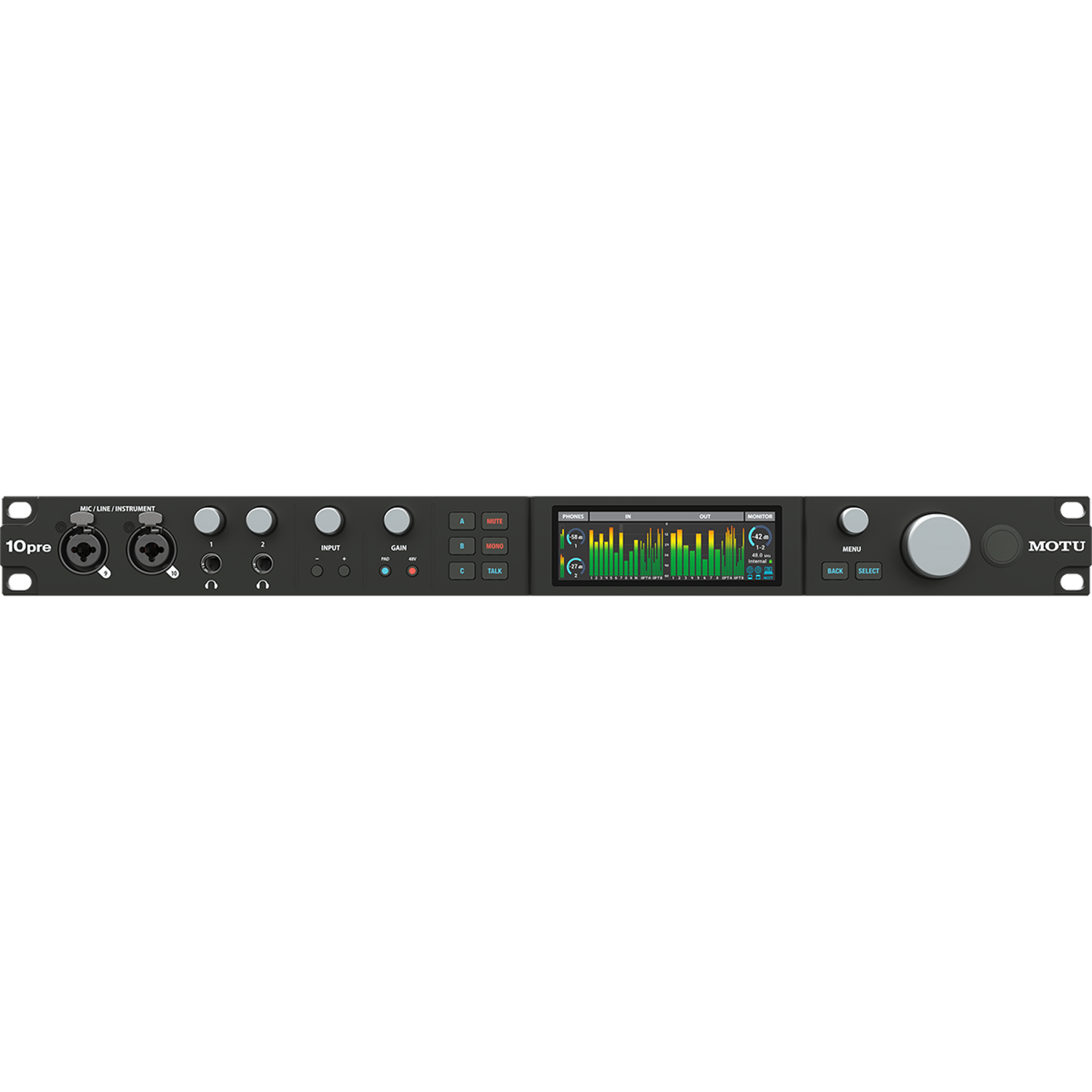 Additional features The new 10pre is AVB-compatible with all other MOTU AVB interfaces. 256 channels of host computer I/O (128 in / 128 out) via Thunderbolt or USB3. 16 8-channel streams for 256 channels of network audio I/O (128 in / 128 out). Each audio stream can be individually configured between 1-8 audio channels. Use multiple PC hosts on the network. Each host can send/receive to all devices and other hosts. Use existing Ethernet wiring. Just replace Ethernet switches with AVB-compatible switches. Shared operation with standard Ethernet devices like wireless routers, switches, etc. Supports 1722.1 for Connection Management and Control. Supports AAF stream formats and the legacy AM8-24 format, configurable per stream. Gigabit Ethernet speeds support many devices on the network. Easy, one-click clock sync across all MOTU devices on the network. Control everything from your laptop, tablet and phoneCueMix™ Pro is the consummate app for controlling everything in the 10pre, including device settings, signal routing and 64-channel mixing and effects. Available for macOS, Windows, and iOS, you can run CueMix Pro on multiple devices at the same time and access the 10pre wirelessly through Wi-Fi. As a 1722.1 controller, CueMix Pro can also be used to access AVB-related settings in 3rd-party devices on the network.