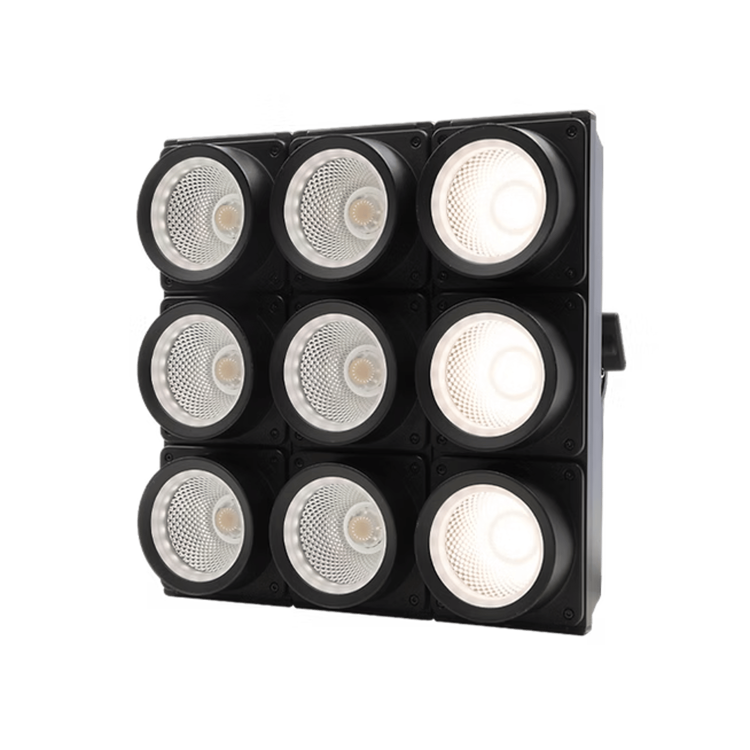 Equipped with 9 powerful CW/WW LEDs of 50W for stunning blinder effects featuring a high CRI (>93).