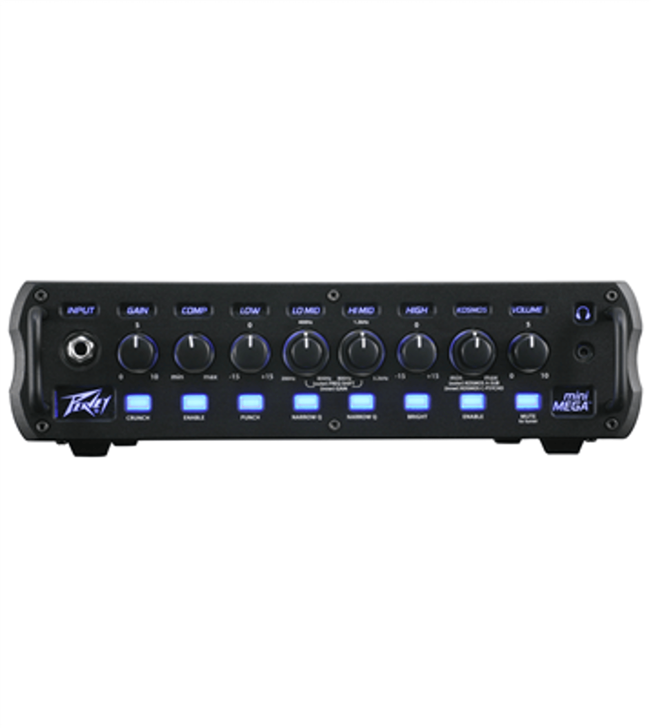 Using technology not found in other bass amps, the MiniMEGA represents a new level of compact bass amplifier performance. Peavey's proprietary KOSMOS® enhancement provides increased bass impact, while the exclusive psychoacoustic low-end enhancement adds bass without overburdening speakers -- a testament to Peavey's technology-driven innovation. The MiniMEGA contains additional modern features such as built-in compression and a 4-band EQ with semi-parametric mids.