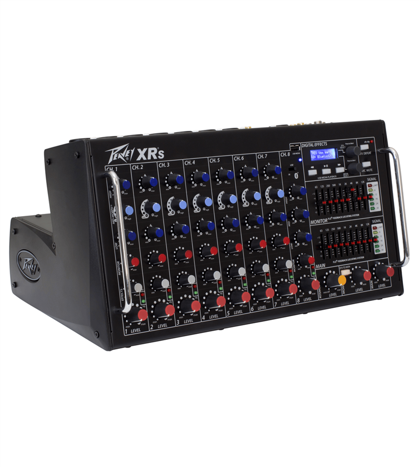 The XR-S comes equipped with on-board digital effects and cutting-edge features that are only available from Peavey, such as MidMorph® and FLS® (Feedback Locating System®). Additionally, the mixer includes Peavey's exclusive KOSMOS® bass enhancement that adds low-end response and increases high-end clarity. The XR-S also features Bluetooth® wireless connectivity for audio playback from any Bluetooth-equipped smart device or USB "jump drive."