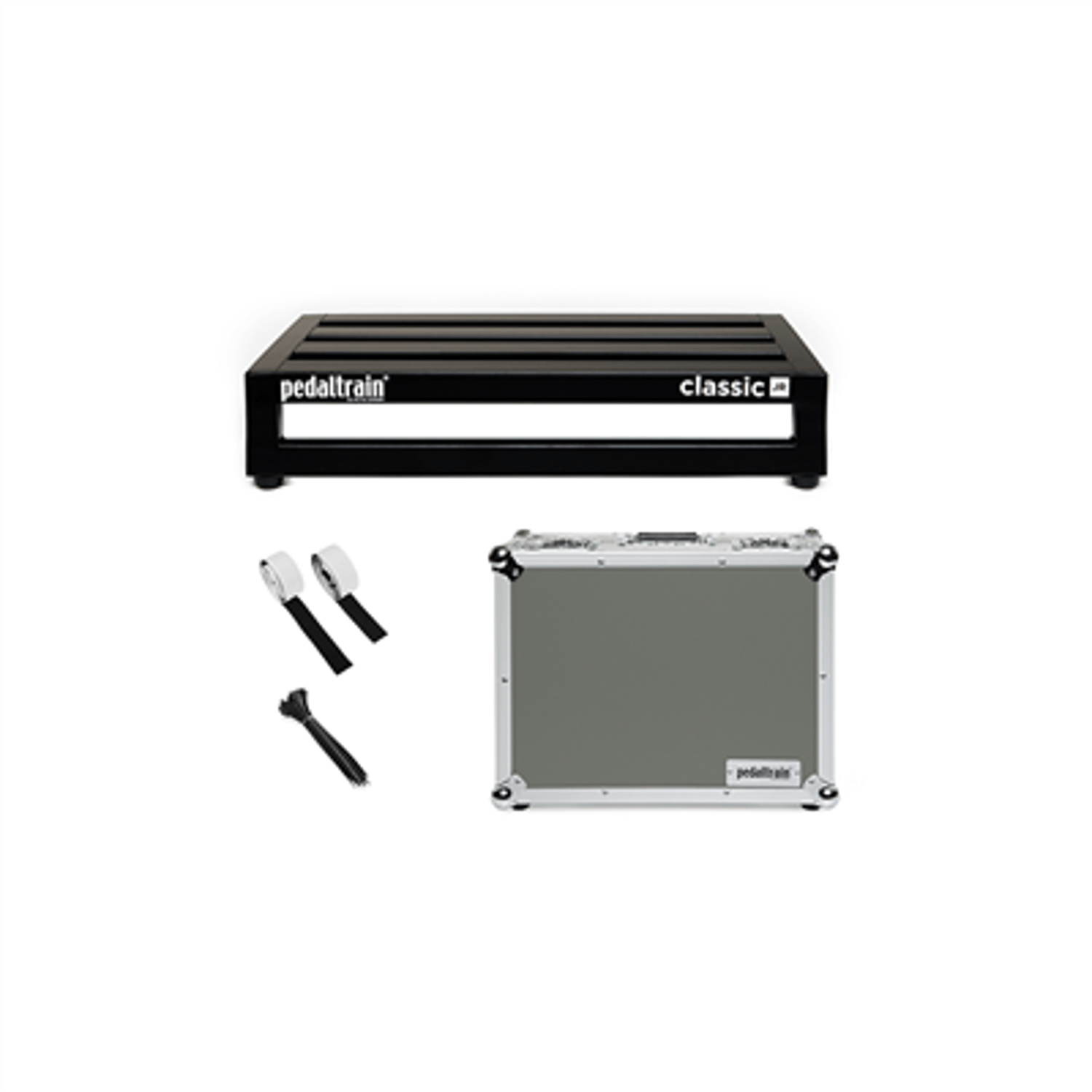 Classic JR is available for purchase with either Pedaltrain’s redesigned fitted soft case (featuring a heavy-duty metal zipper and reinforced stress points) or Pedaltrain’s new professional-grade tour case.Pedaltrain’s new one-size-fits-all power supply mounting brackets are available for purchase as needed. (Voodoo Lab Mounting Kit: PT-VDL-MK; Universal Mounting Kit: PT-UNI-MK).