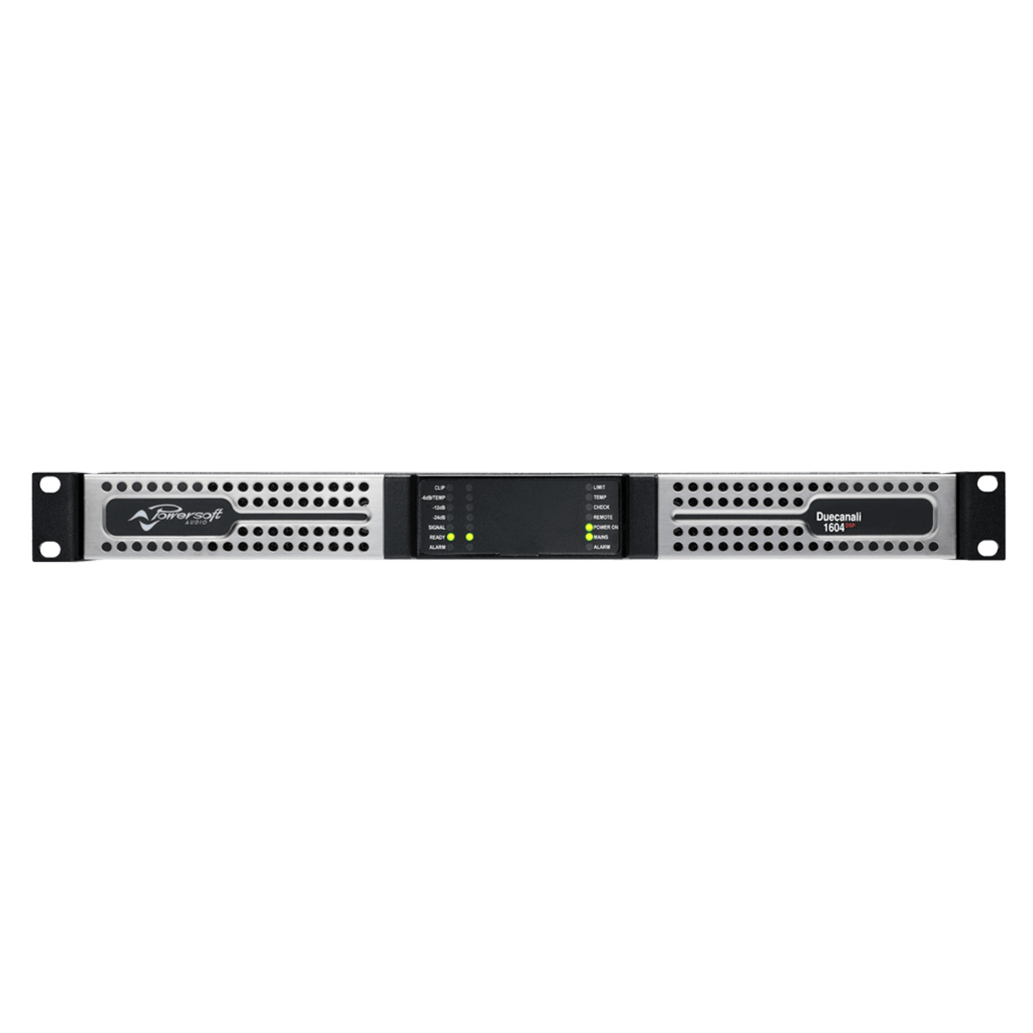 The ability to implement any configuration with ease makes the Duecanali series extremely flexible. Powersoft’s legendary efficiency saves valuable energy, keeping both operational cost and ‘carbon footprint’ at a minimum.The Duecanali 1604 DSP is designed to work with Lo-Z (from 2 O ) and with 70V/100V distributed lines: any mixed impedance output loads can be realized.A fully integrated state-of-the-art DSP yields extensive system management functionality. In addition to sound shaping and limiter functions in unique Powersoft style, the DSP hardware and ArmoníaPlus software enable compliance with IEC 60849 for the crucial requirements of sound systems for emergency purposes.MyPowersoft services are available for this product.