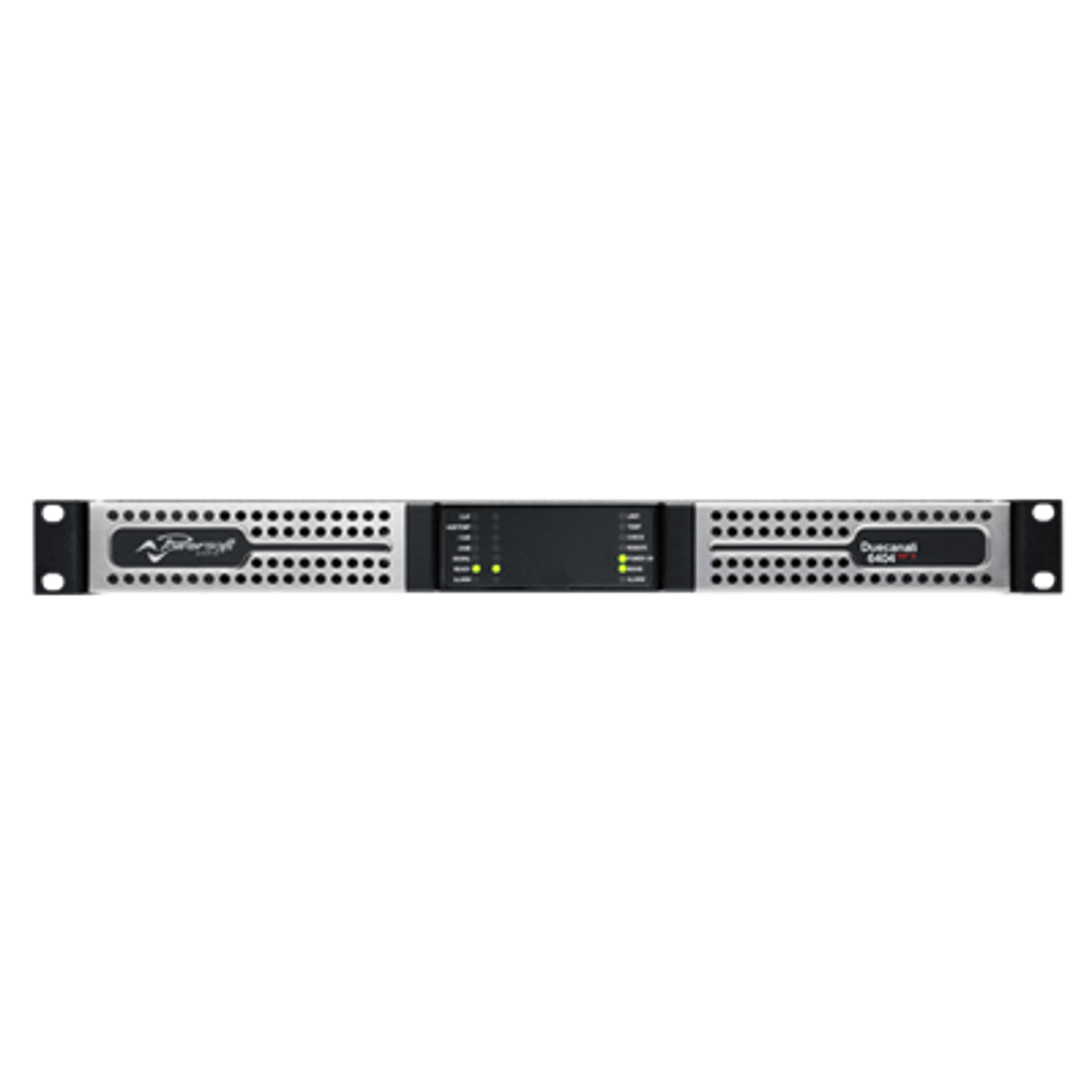 The ability to implement any configuration with ease makes the Duecanali series extremely flexible. Powersoft’s legendary efficiency saves valuable energy, keeping both operational cost and ‘carbon footprint’ at a minimum.The Duecanali 6404 DSP+ is designed to work with Lo-Z (from 2 O ) and with 70V/100V distributed lines: any mixed impedance output loads can be realized.A fully integrated state-of-the-art DSP yields extensive system management functionality. In addition to sound shaping and limiter functions in a unique Powersoft style, the DSP hardware and ArmoníaPlus software enable compliance with IEC 60849 for the crucial requirements of sound systems for emergency purposes.DSP+ versions extend signal routing capabilities with the integration of AES67 digital audio networking architecture.MyPowersoft services are available for this product