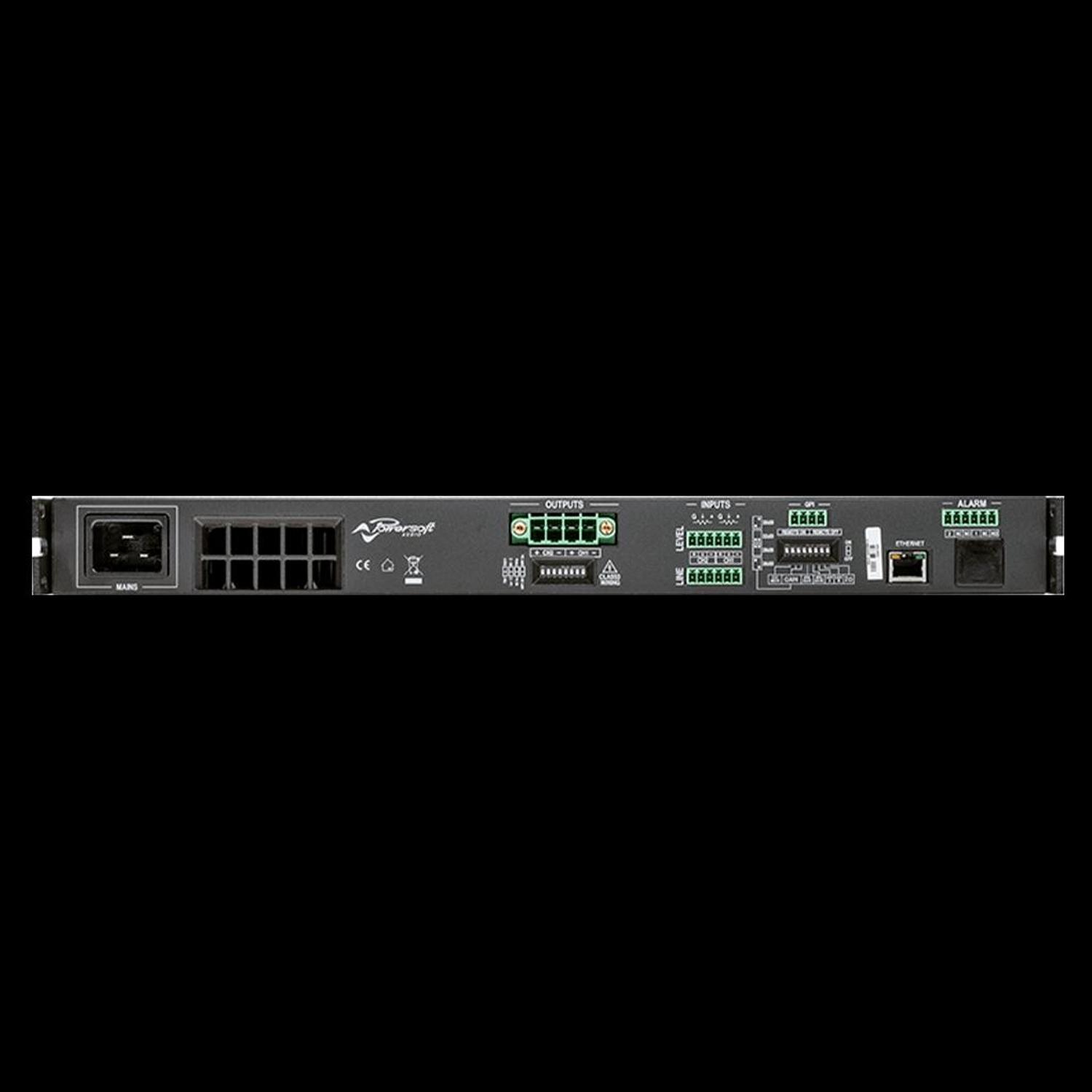 The ability to implement any configuration with ease makes the Duecanali series extremely flexible. Powersoft’s legendary efficiency saves valuable energy, keeping both operational cost and ‘carbon footprint’ at a minimum.The Duecanali 804 DSP is designed to work with Lo-Z (from 2 O ) and with 70V/100V distributed lines: any mixed impedance output loads can be realized.A fully integrated state-of-the-art DSP yields extensive system management functionality. In addition to sound shaping and limiter functions in unique Powersoft style, the DSP hardware and ArmoníaPlus software enable compliance with IEC 60849 for the crucial requirements of sound systems for emergency purposes.MyPowersoft services are available for this product.