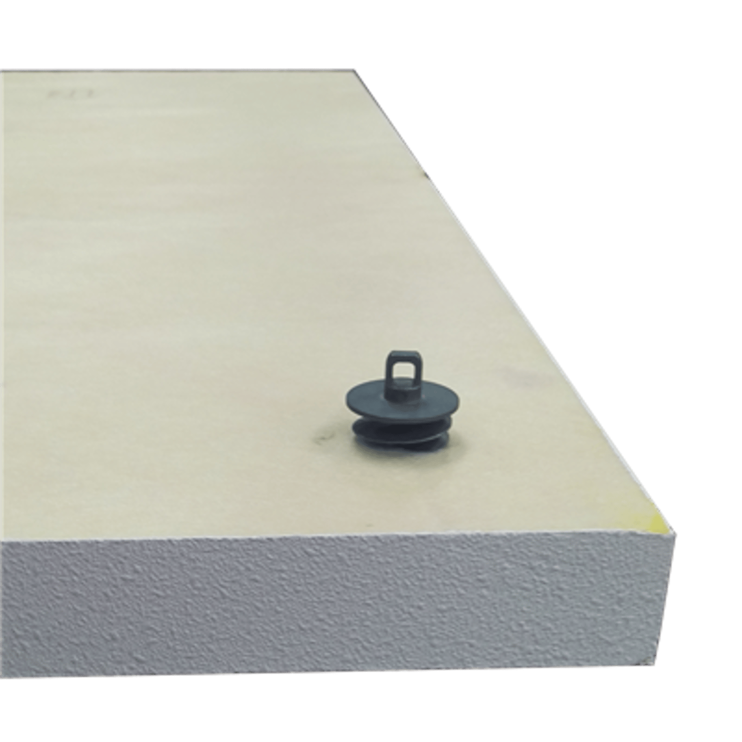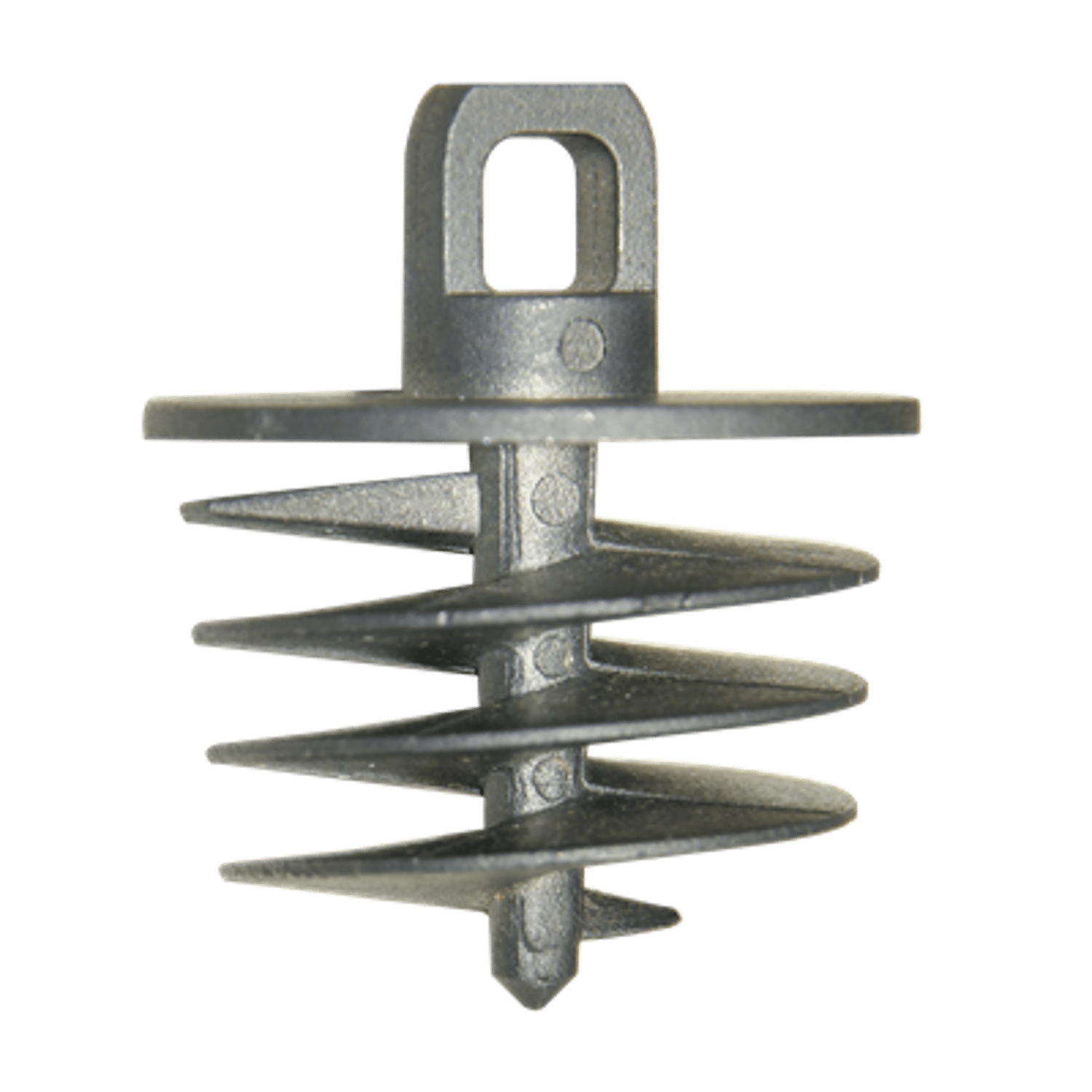 The Helix, is a solid zinc die-cast device that integrates an eye hole and a wide screw that create a reliable and sturdy anchor for hanging any Primacoustic panel as an acoustic cloud using the adjustable SlipNot™ suspension system shown below.
