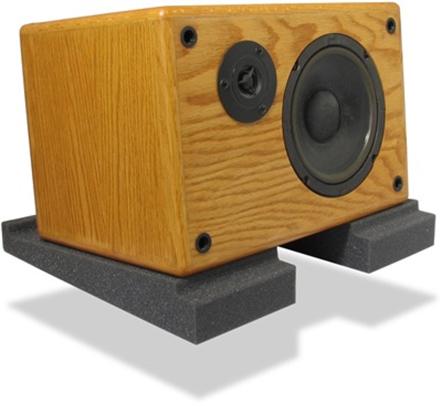 The IsoWedge is a monitor isolation pad designed to decouple the sound from the loudspeaker so that it will not resonate with the desk or shelf. This helps reduce an effect called comb-filtering that occurs when various frequencies add or cancel with each other when coupled.