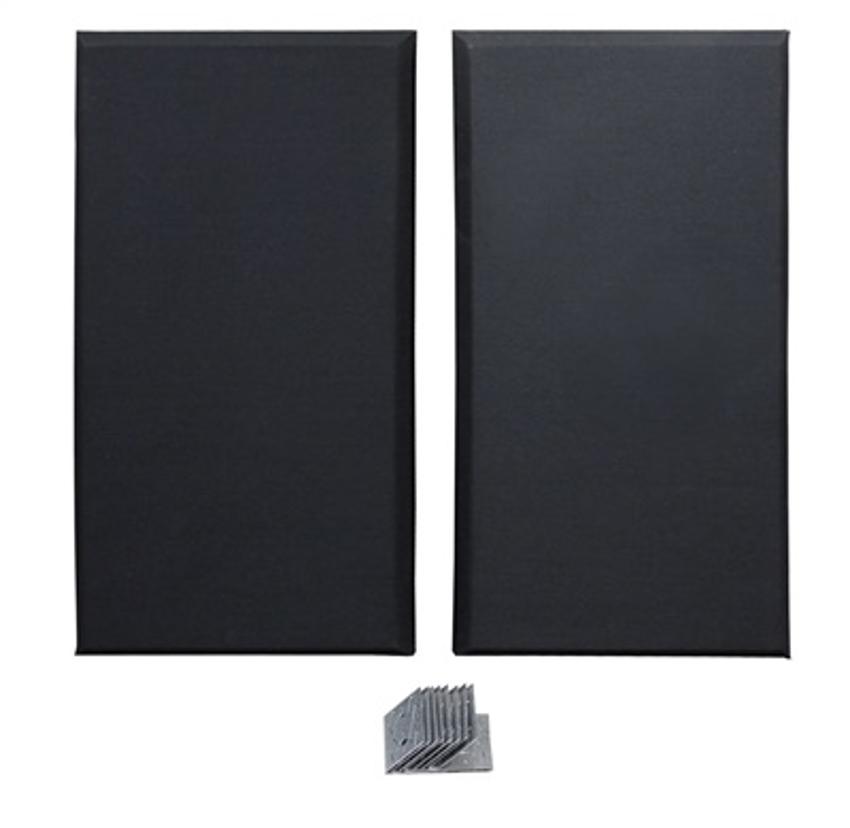 The London Bass Trap kit consists of two 24"x48" (61 x 122cm) Broadband 2" (5cm) thick absorption panels along with corner-mount Impalers, sheetrock anchors and screws. Each panel is constructed from high-density 6lb glass wool with resin hardened edges and fully encapsulated with micromesh. The panel is hand wrapped with an acoustically transparent polyester fabric to create sharp, architecturally pleasing lines. Installation is just about as easy as hanging a picture! Once installed, the substantial surface area of the panel combined with the 17" deep (43cm) air cavity created in behind delivers excellent absorption throughout the audio listening range and extends well down into the low bass region. This helps reduce troublesome room modes and hot spots by attenuating standing waves making it easier to record and produce music with greater confidence.