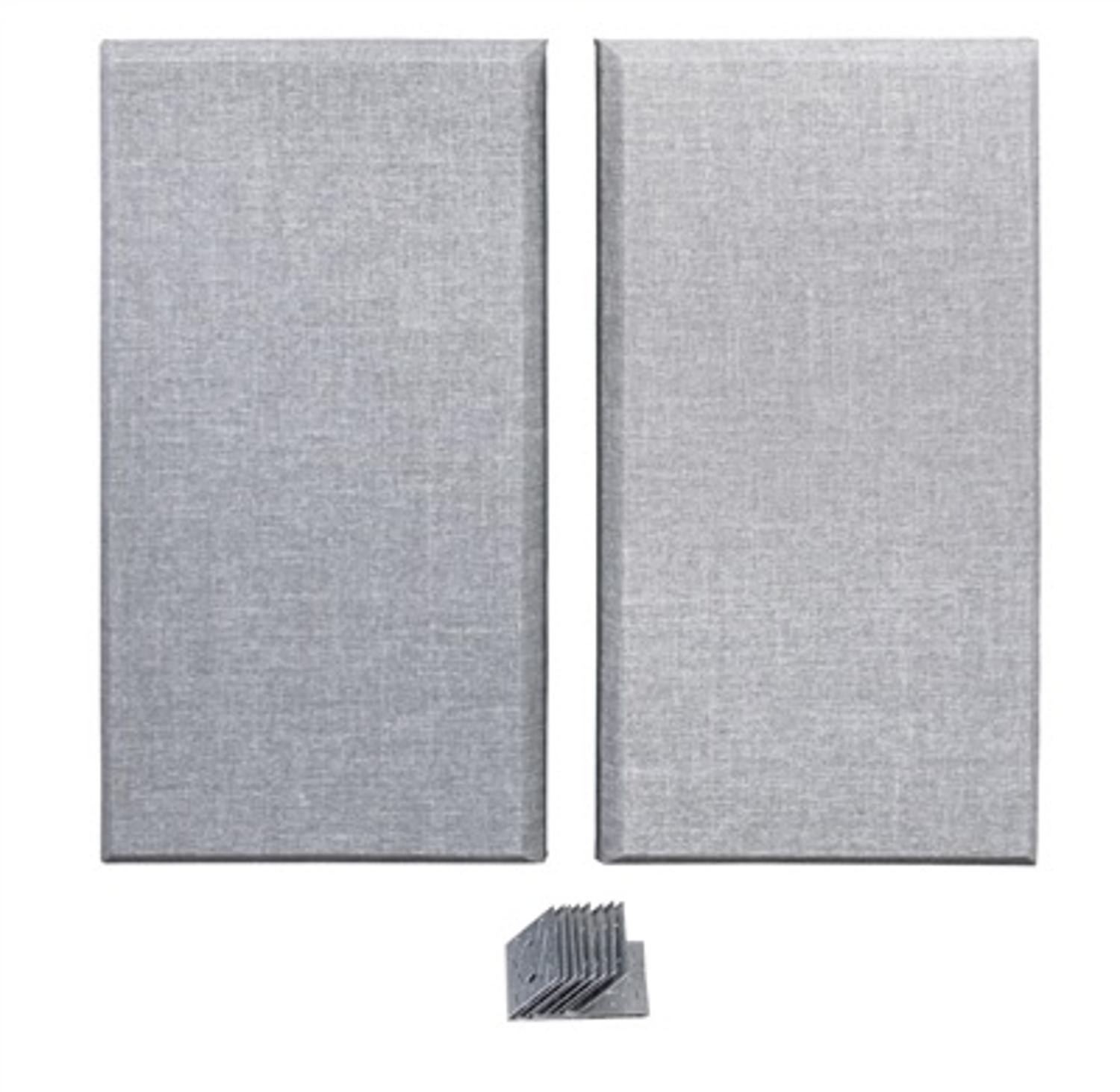 The London Bass Trap kit consists of two 24"x48" (61 x 122cm) Broadband 2" (5cm) thick absorption panels along with corner-mount Impalers, sheetrock anchors and screws. Each panel is constructed from high-density 6lb glass wool with resin hardened edges and fully encapsulated with micromesh. The panel is hand wrapped with an acoustically transparent polyester fabric to create sharp, architecturally pleasing lines. Installation is just about as easy as hanging a picture! Once installed, the substantial surface area of the panel combined with the 17" deep (43cm) air cavity created in behind delivers excellent absorption throughout the audio listening range and extends well down into the low bass region. This helps reduce troublesome room modes and hot spots by attenuating standing waves making it easier to record and produce music with greater confidence.