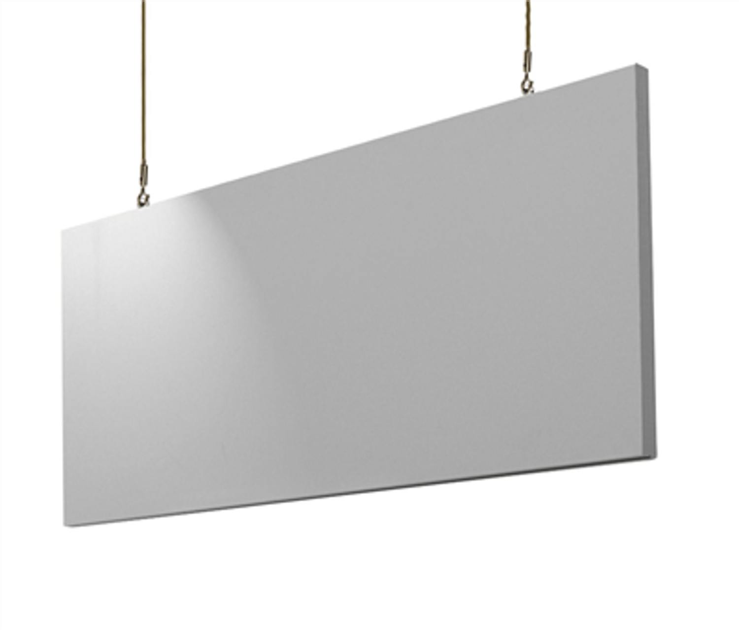 The Saturna and Saturna LP have been tested to meet stringent fire ratings for use in public spaces worldwide, which makes them a great choice in any room where unobtrusive and aesthetically pleasing baffles are desired. Available in black, grey or beige acoustic fabric, or in a paintable textured white finish. Each Saturna kit includes two panels, four preinstalled Corkscrew anchors, four SlipNot suspension cables, and T-anchors and eyehooks for installation on most ceilings.