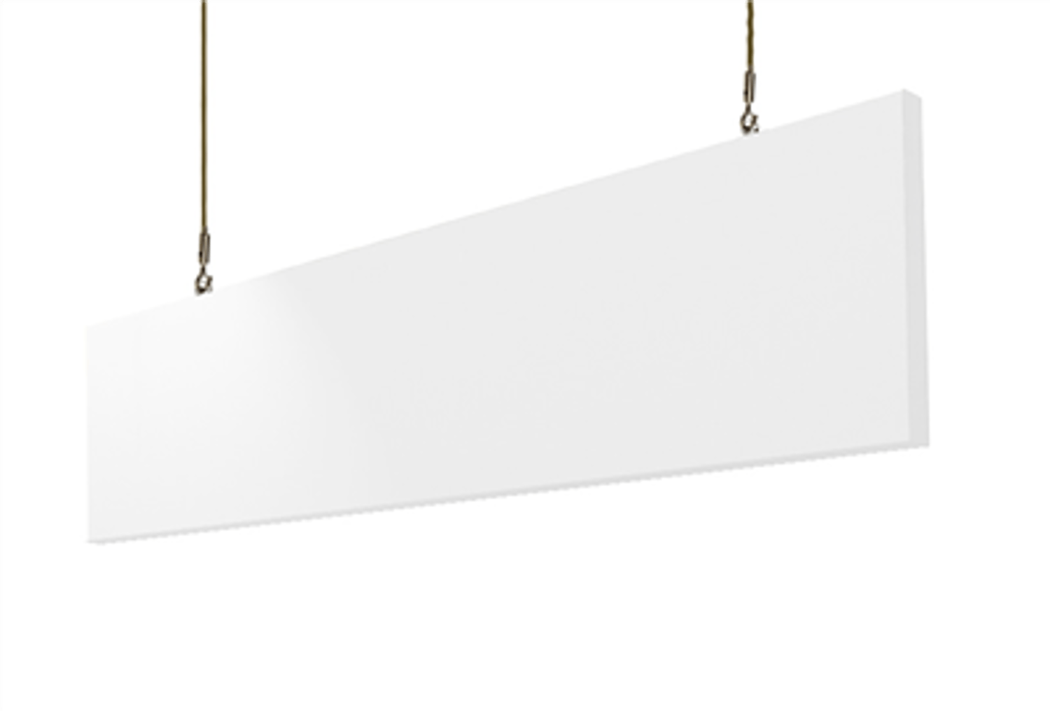 Construction begins with two high-density 6lb glass wool panels that are fully encapsulated with micromesh and bound with resin hardened edges. This prevents the minute glass fibers from escaping during the handling process. Each panel is then hand wrapped in a durable acoustically transparent fabric that is both attractive and easy to clean. The two panels are then clamped together with the adjustable hanging straps and ready to install right out of the box. Available in a choice of three architecturally neutral colors.