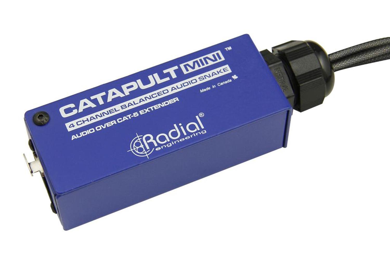 All of the Radial Catapult modules are compatible with each other, and each is sold individually, so you can select whichever combination best suits your needs. The Catapult Mini RX and TX can be used together as a pair, creating a compact 4-channel audio snake. However, if you prefer to have a stage box to plug microphones into, but want a compact breakout cable that fits in the case with the mixer, combine the Catapult TX4 with the Catapult Mini RX. A variety of modules allow you to customize your transmit and receive devices to complement any application.