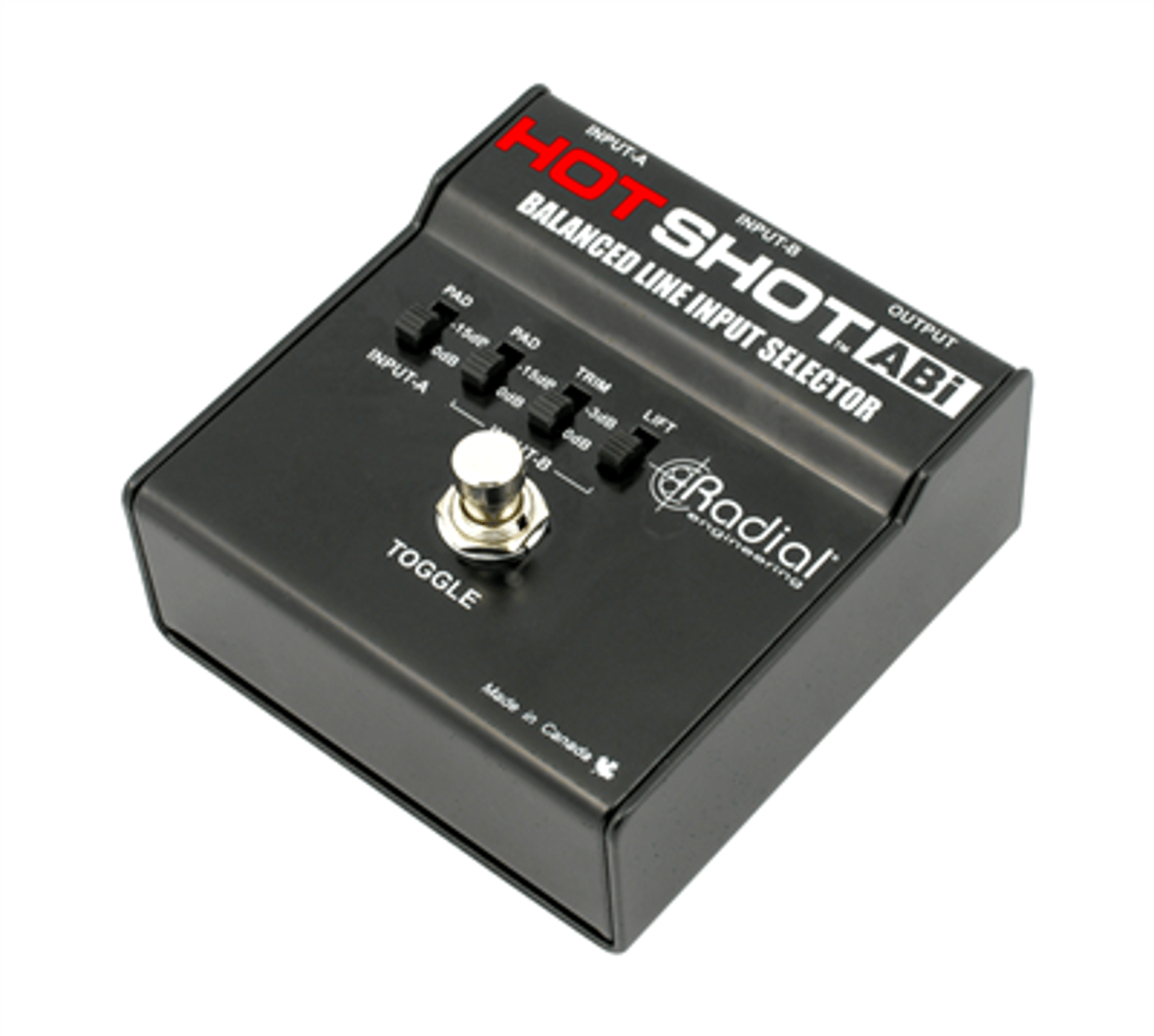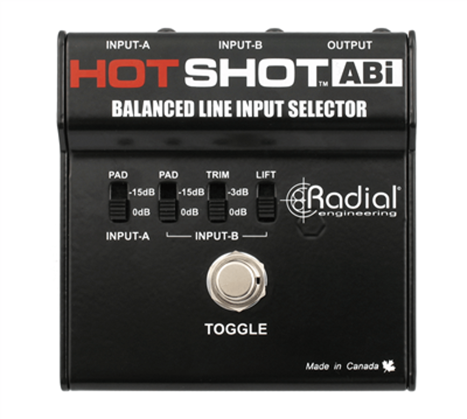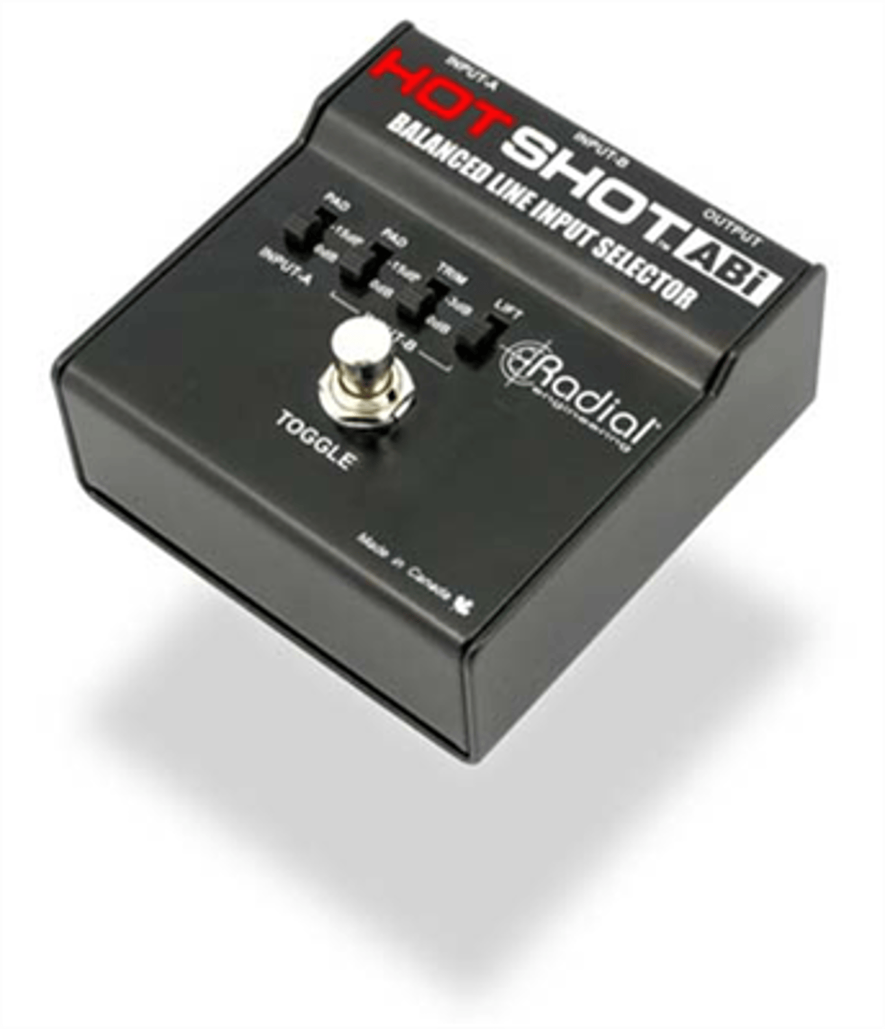 The HotShot ABi is a balanced signal selector that allows you to instantly select between two sources by depressing a latching footswitch. It features separate -15dB input pad selectors on each input to better balance the signal levels. And since it is completely passive, power is not required to make it work.